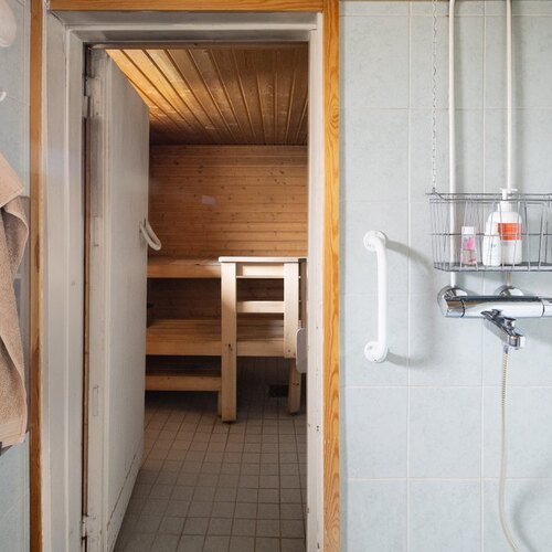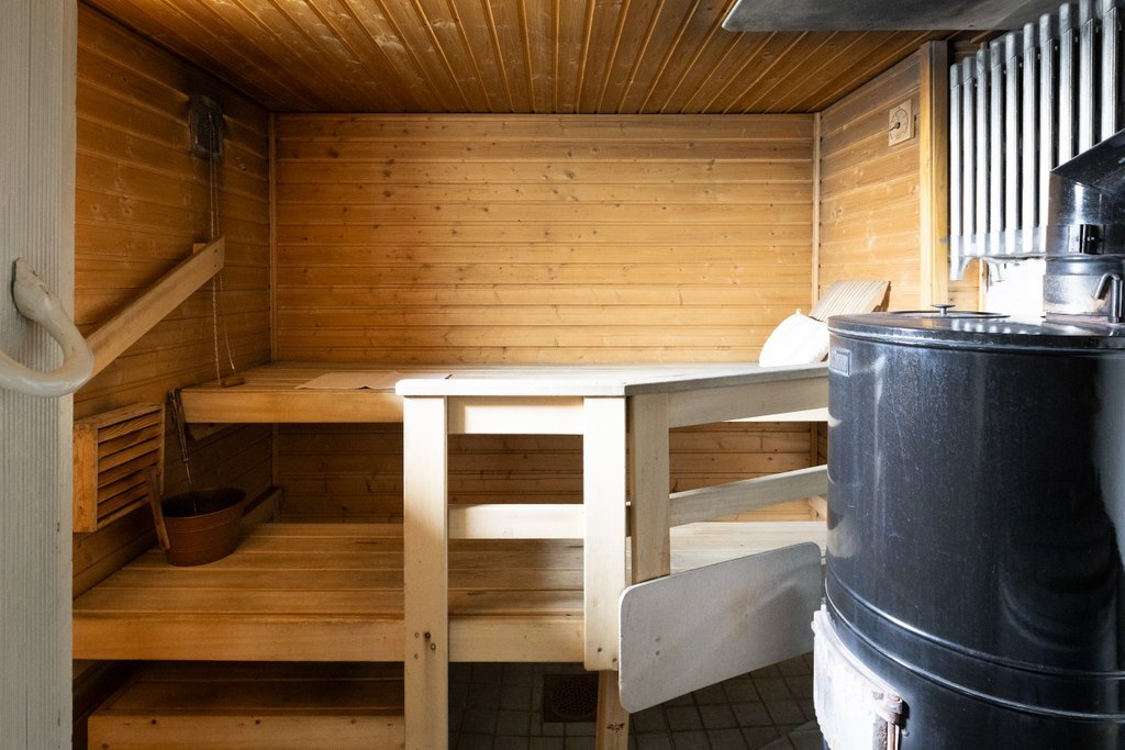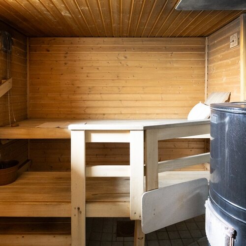 – Saunassa kertalämmitteinen puukiuas, joka tarjoaa pehmeät löylyt.