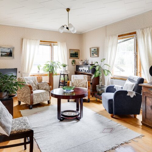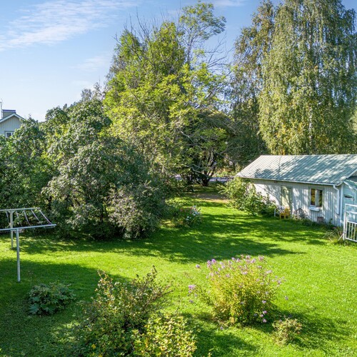 50-luvulla rakennettu tunnelmallinen koti 2000 m² puutarhatontilla, lähellä koulua ja päiväkotia.