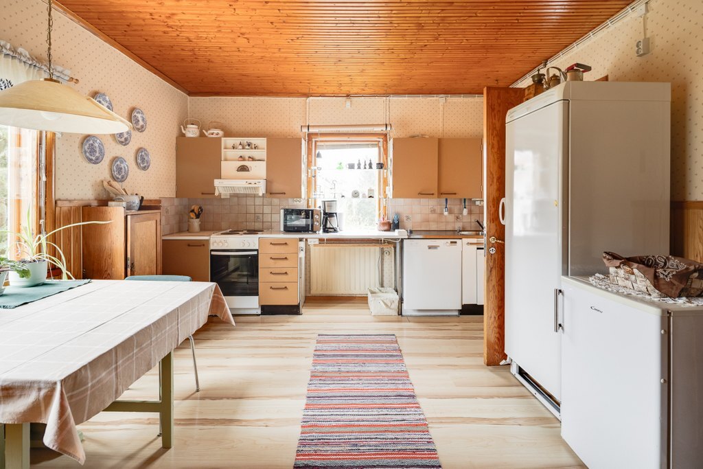 Varusteet: jääkaappi, pakastin, sähköliesi, puuhella, astianpesukone, liesituuletin hormilla