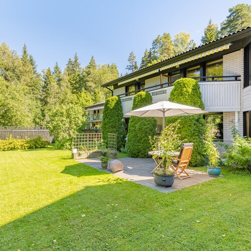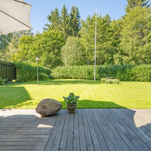 – Aurinkoinen, mutta suojaisa iso piha, joka rajoittuu luonnonvaraiseen puistoon
