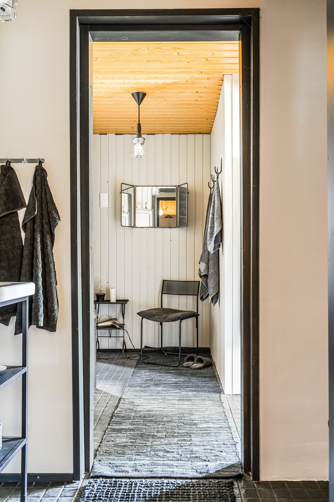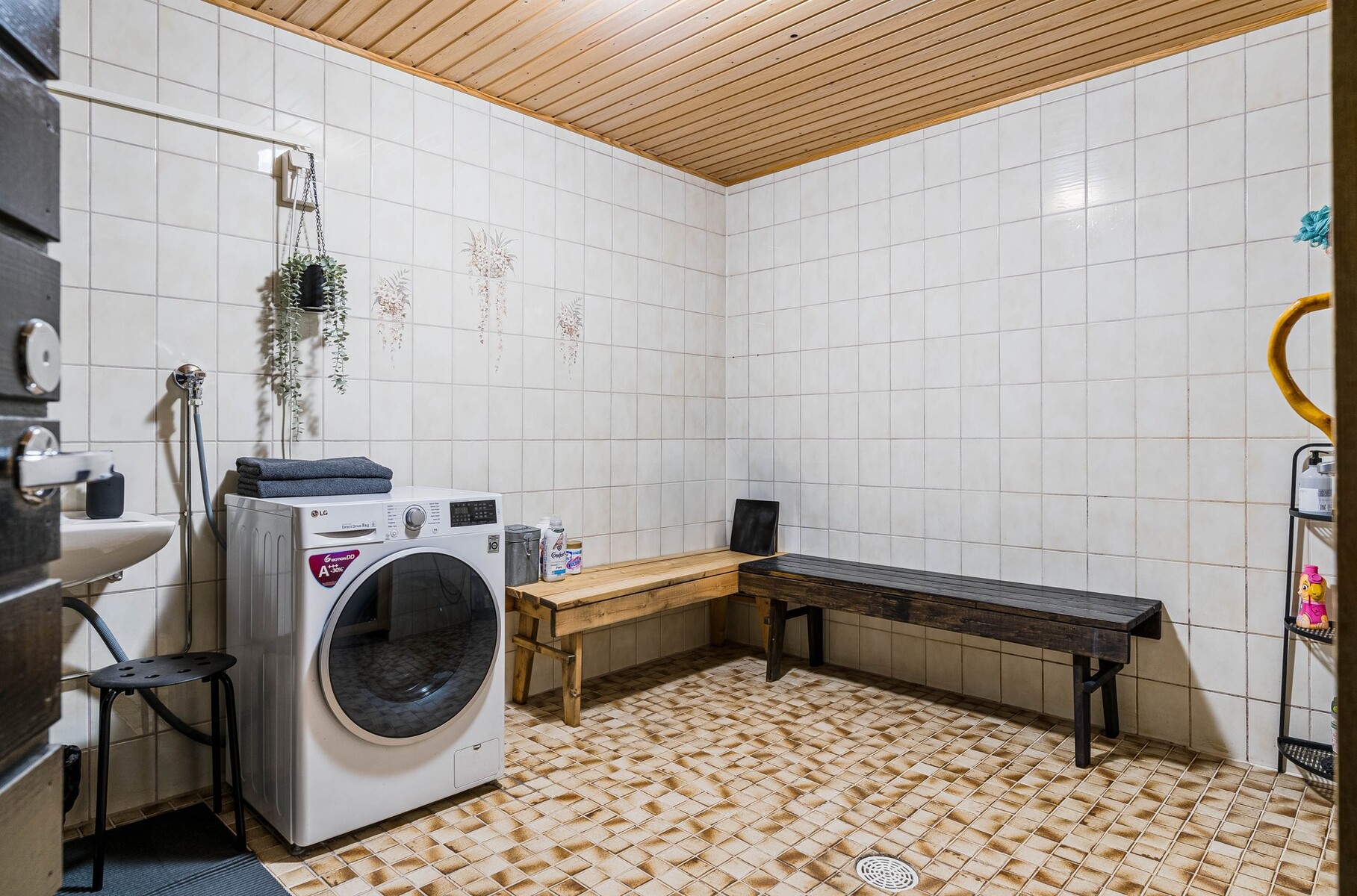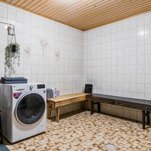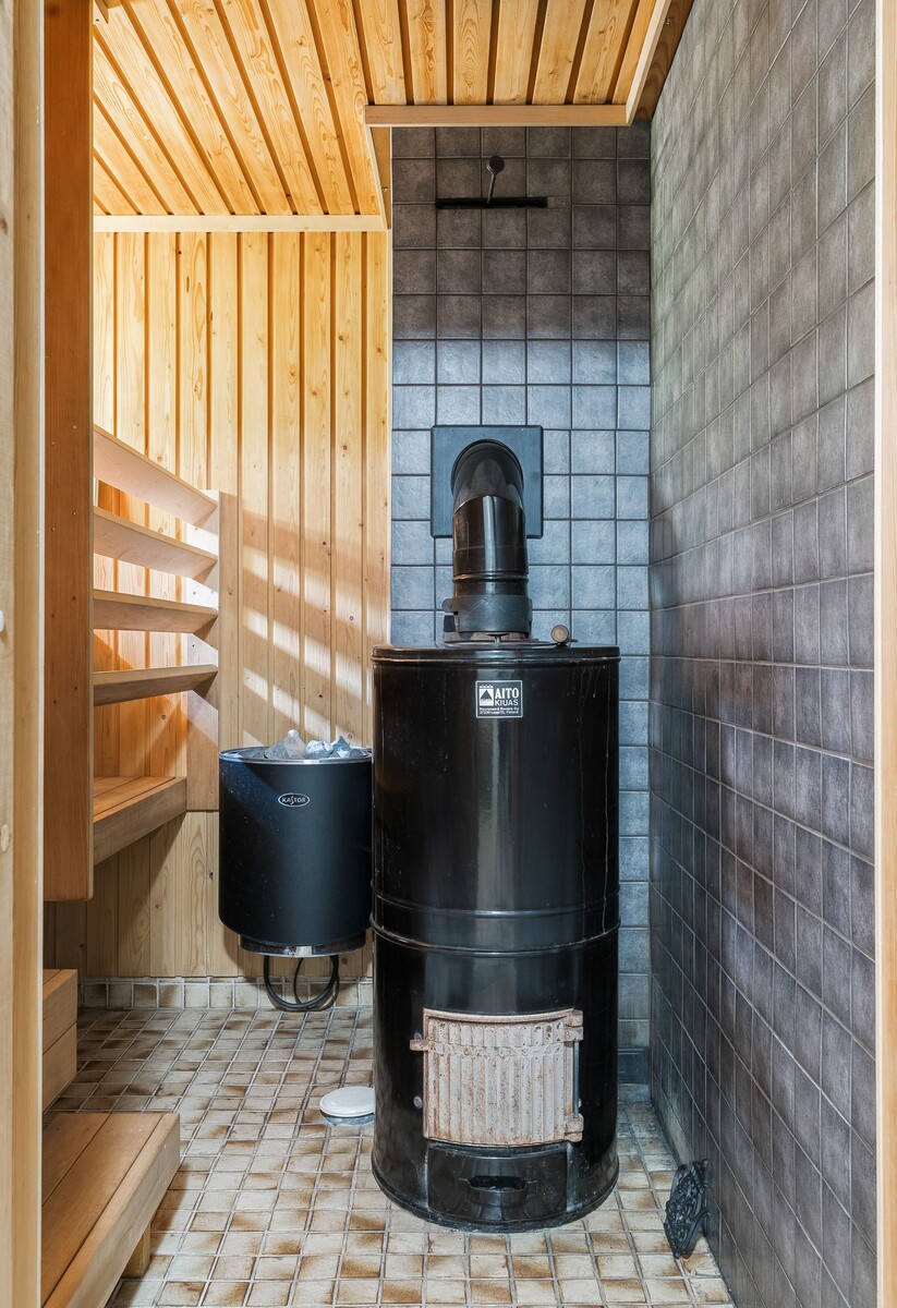 Lattia: laatta, seinät: kaakeli, varustus: suihku, lattialämmitys.