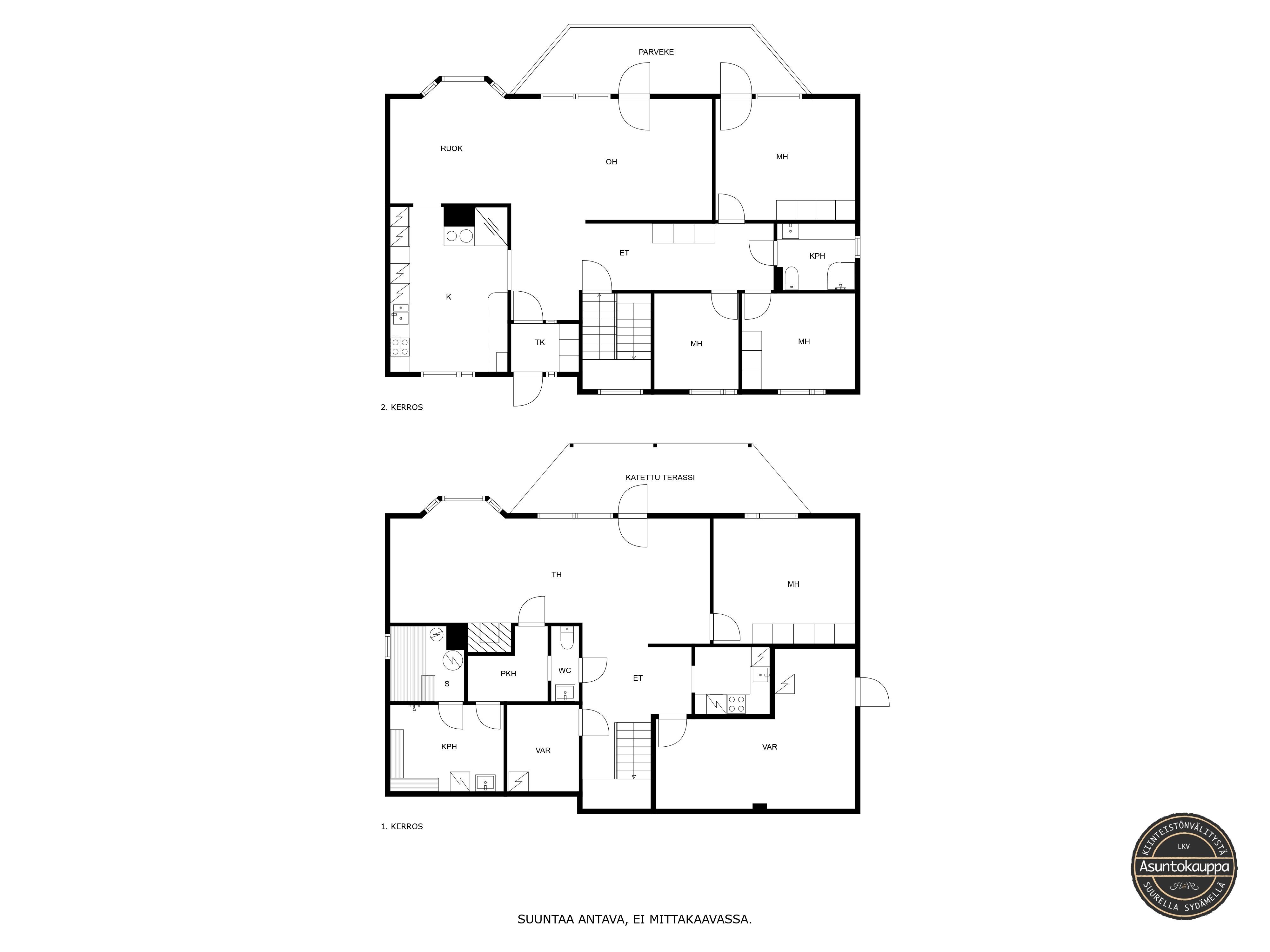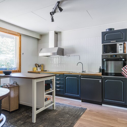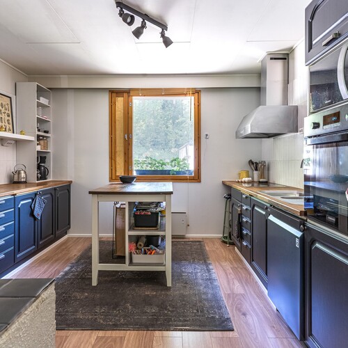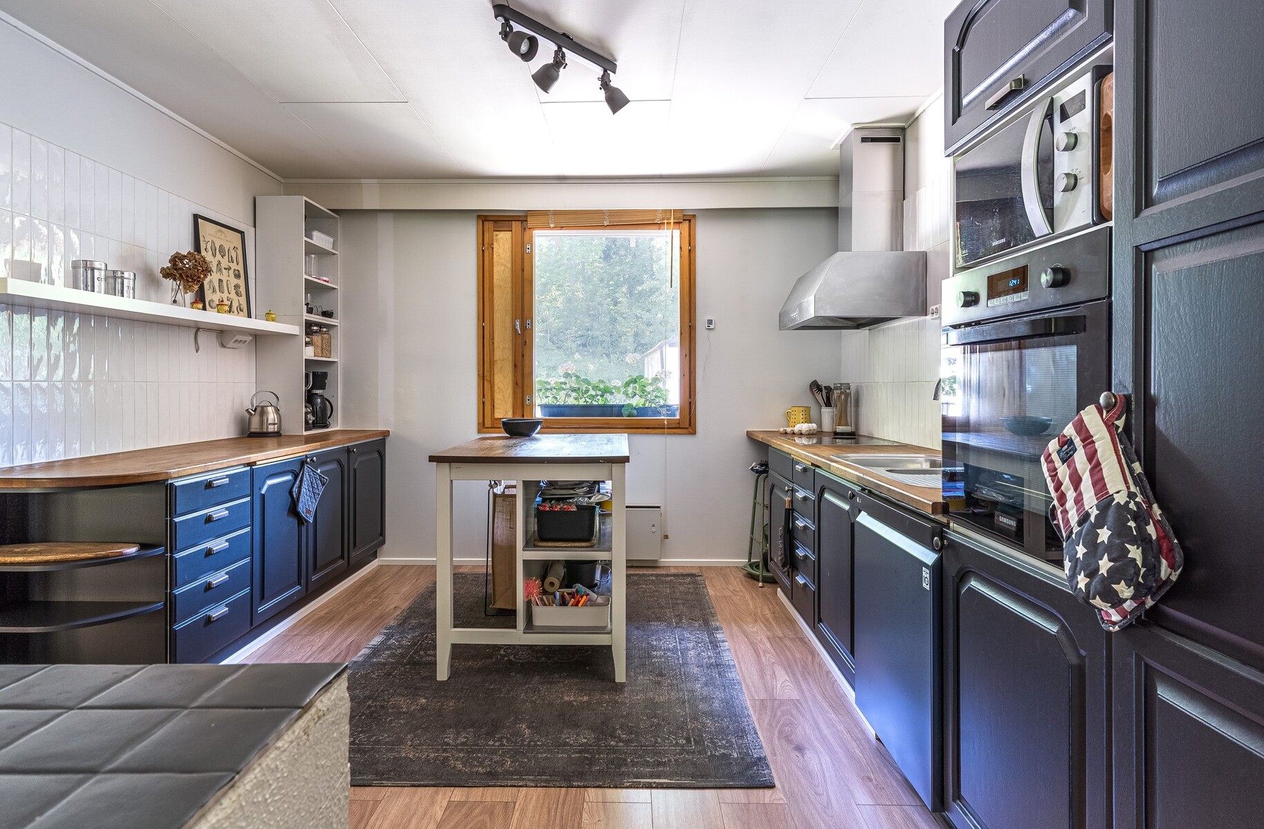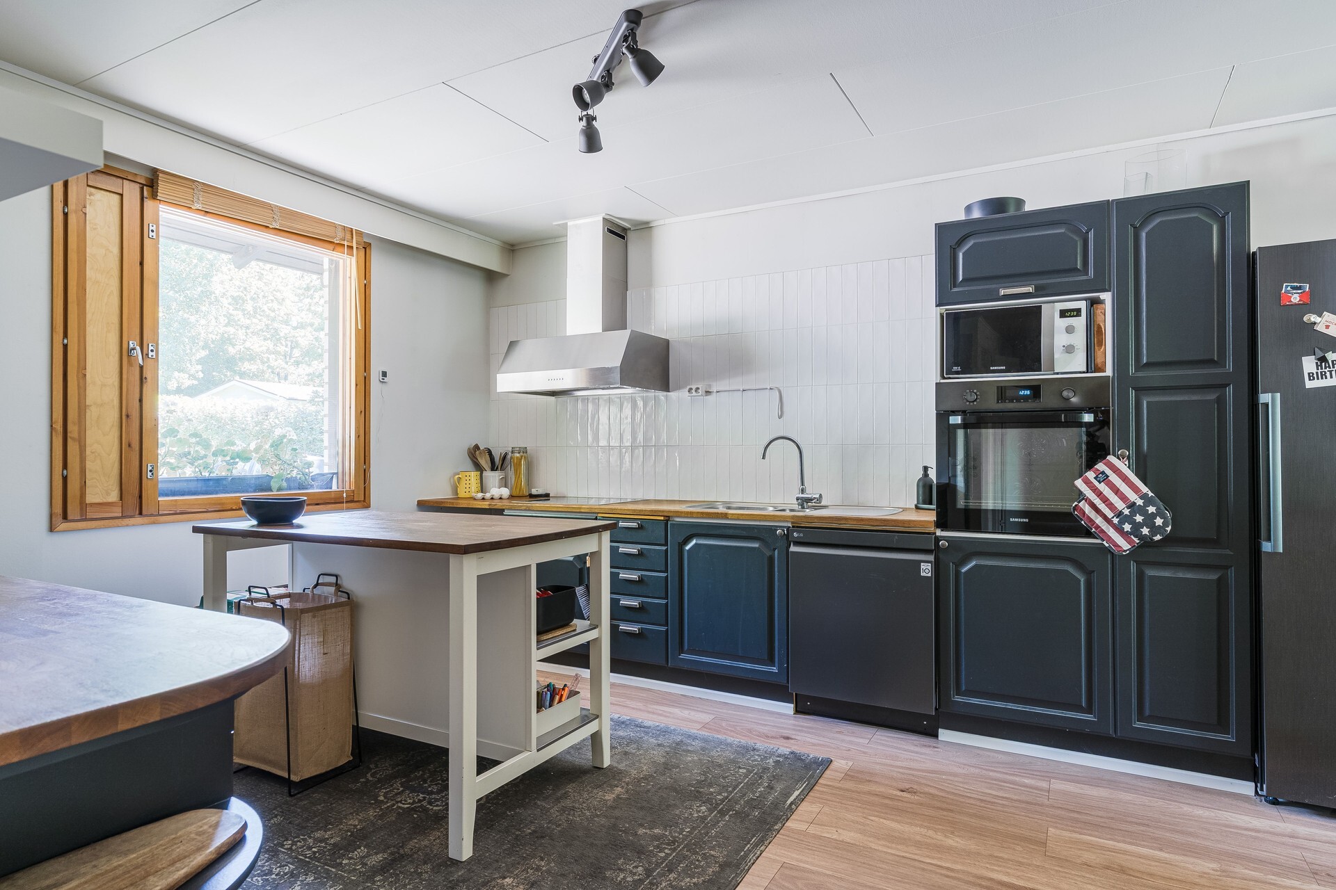 – Molemmissa kerroksissa keittiö, joten talo soveltuu esimerkiksi kahden sukupolven asumiseen