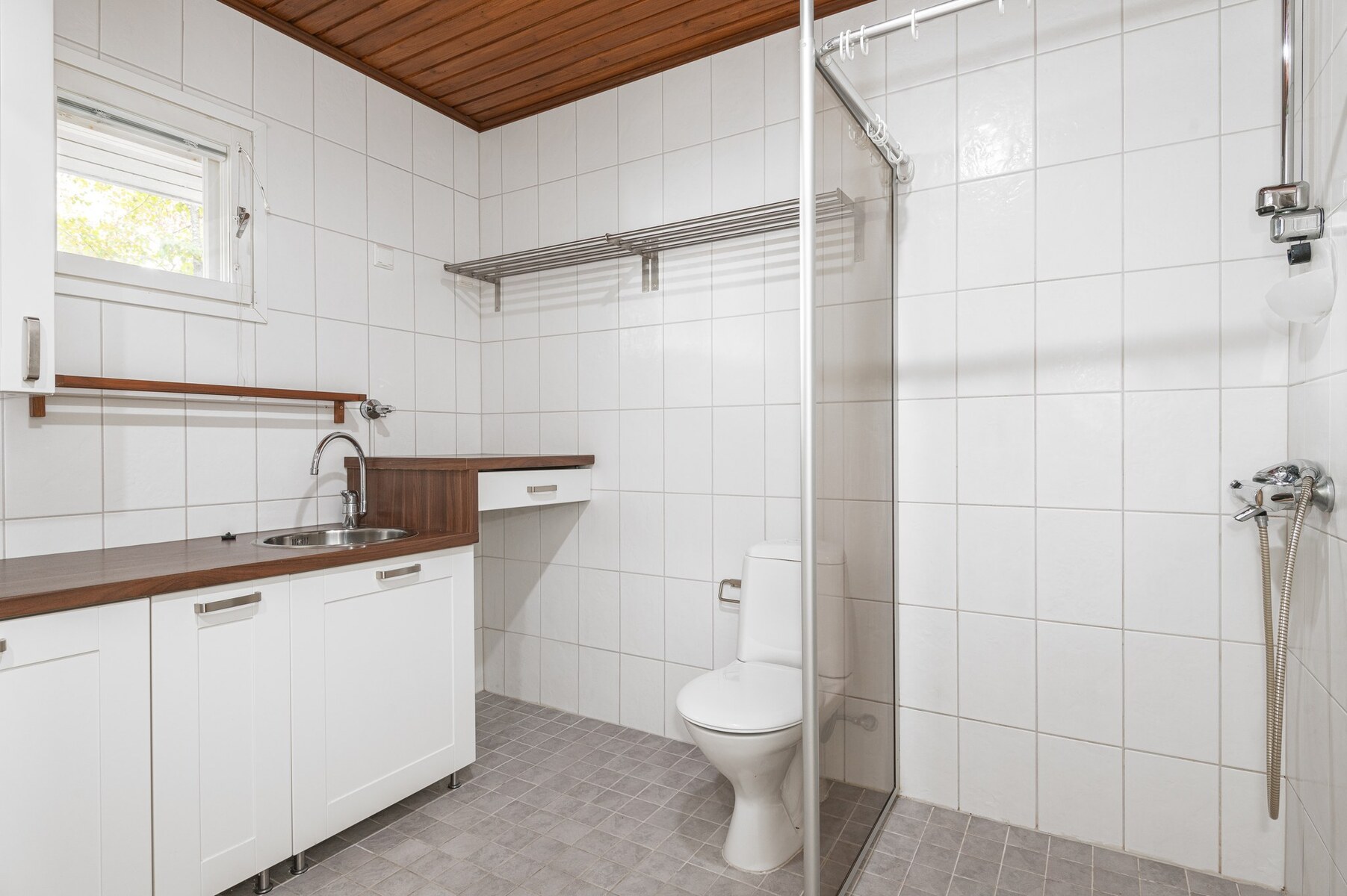 Kauniisti remontoitu pesuhuone. pesuallas, bidee-suihku, allaskaappi