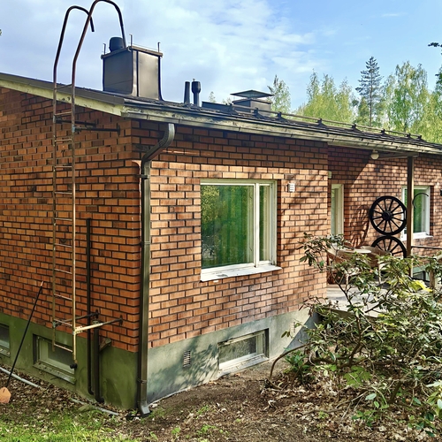 Järvimaisemissa talo, jossa on tehty mittavat remontit, mutta ne ovat jääneet kesken.