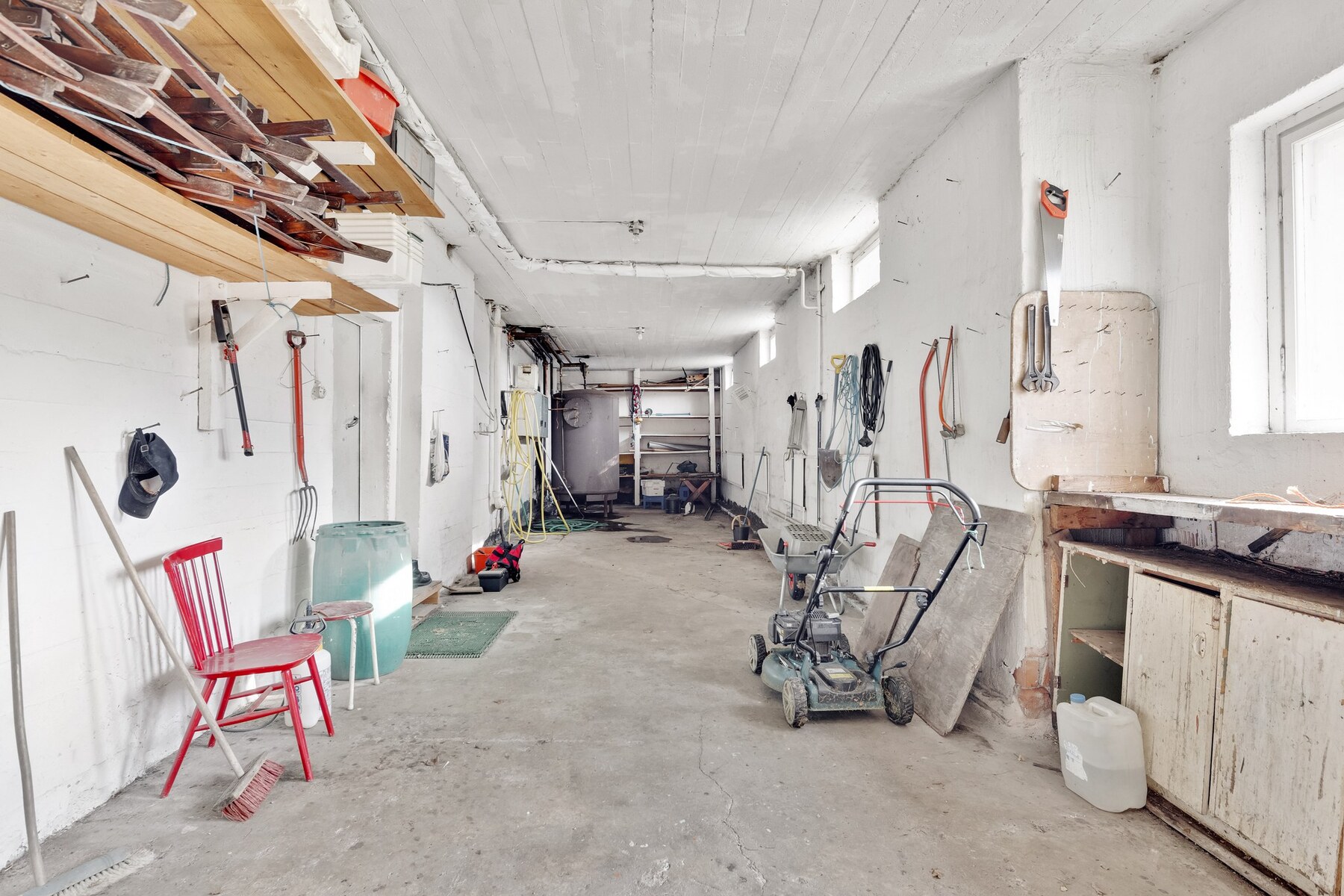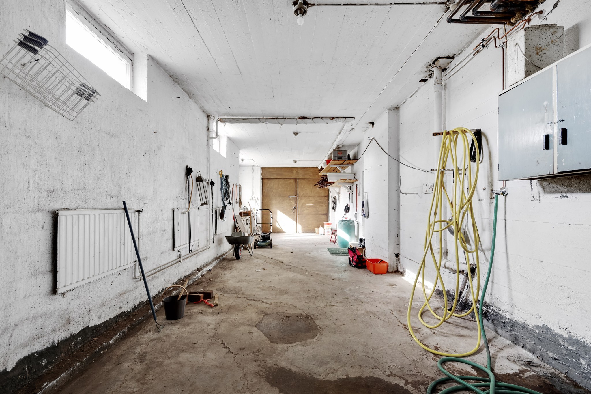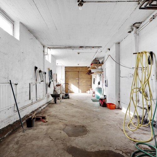– 16 metriä pitkä ja 2,90 metriä korkea lämmin autotalli talon alakerrassa