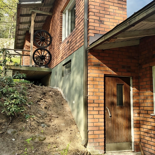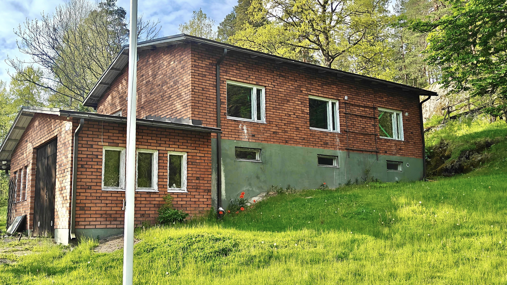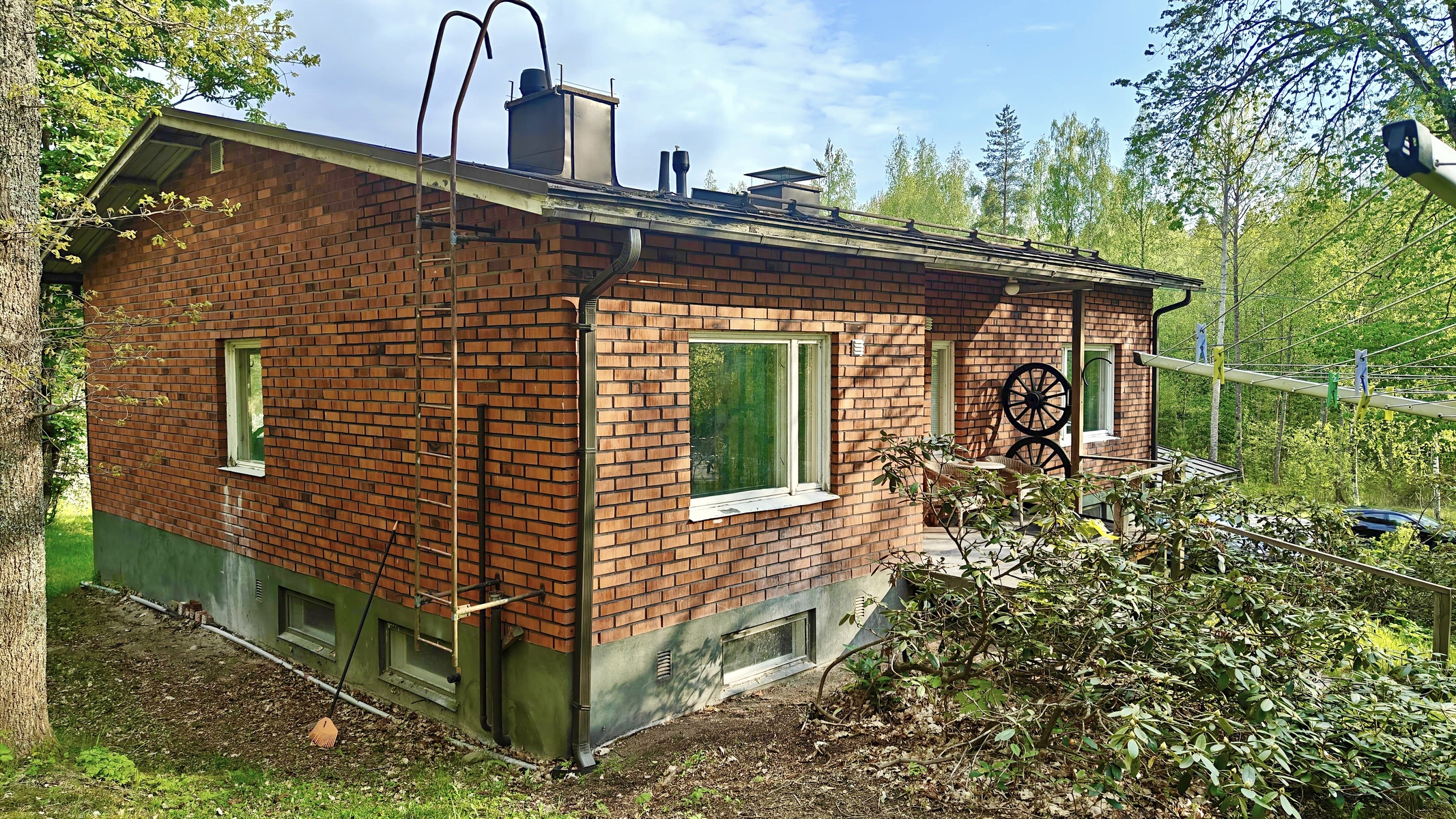 Rakennusmateriaali: puu, tiili, betoni.