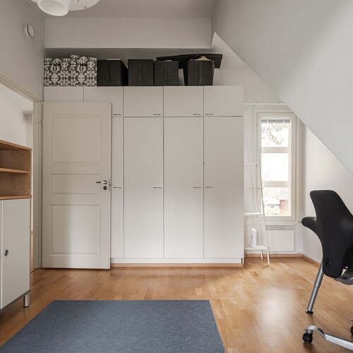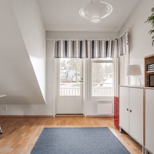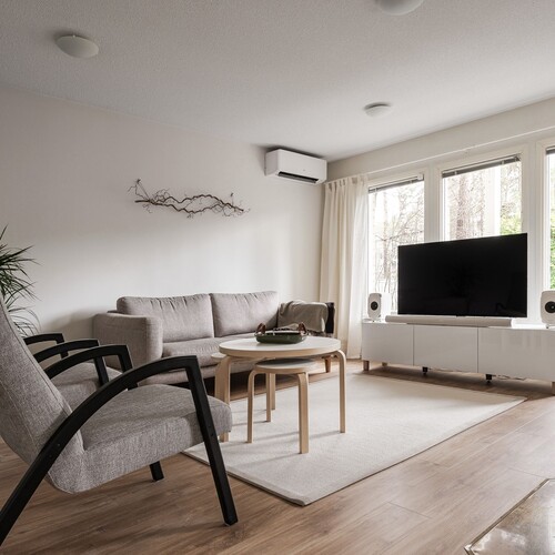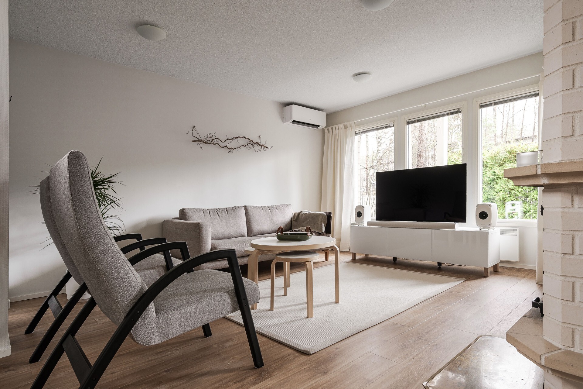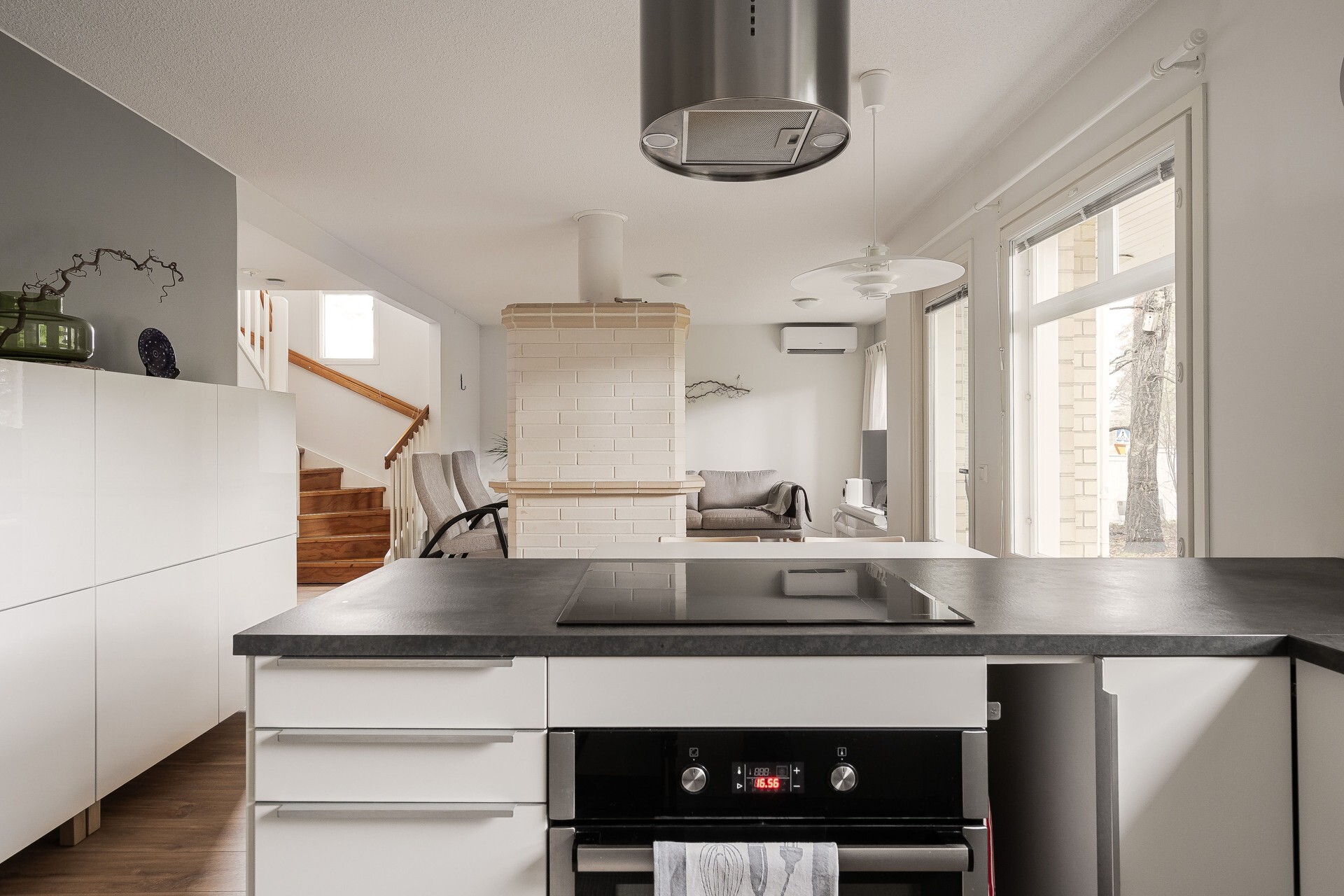– Alakerrassa keskeisellä paikalla lämmittää varaava takka ja asunnossa myös kaksi ilmalämpöpumppua.