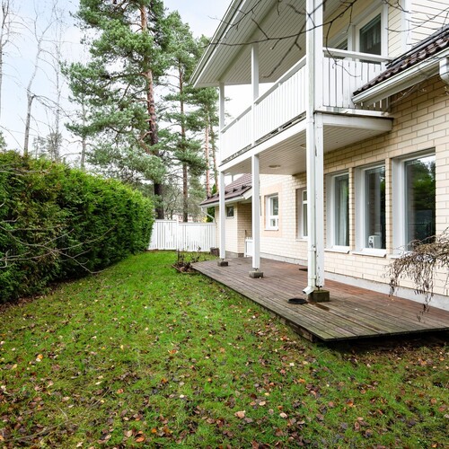 – Aurinkoinen terassi, jonka jatkeena aidattu piha-alue.