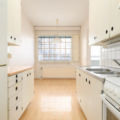 Läpitalon huoneisto, joka tarjoaa loistavan pohjan ja mahdollisuuden tehdä juuri omannäköisen kodin.