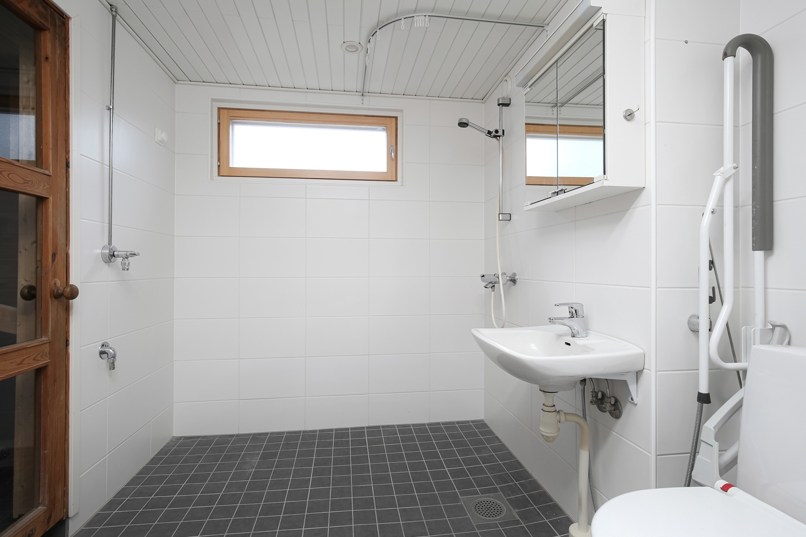 Kylpyhuone, suihku, allas, peilikaappi, pesukoneliitäntä
