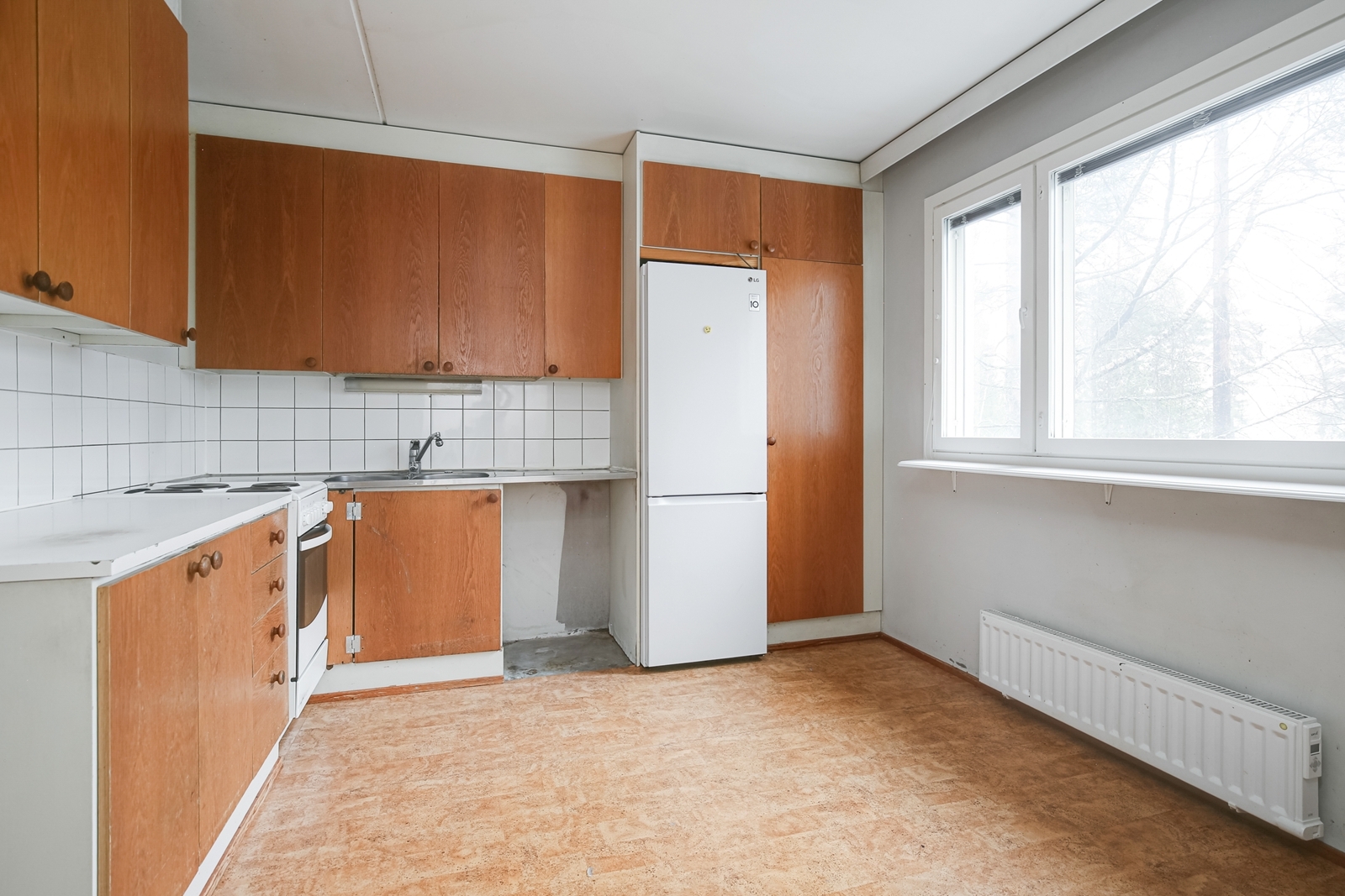Jääkaappipakastin, sähköliesi, liesituuletin hormiin, kaapistot