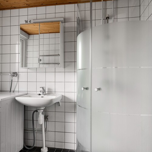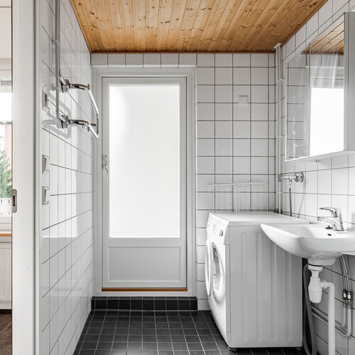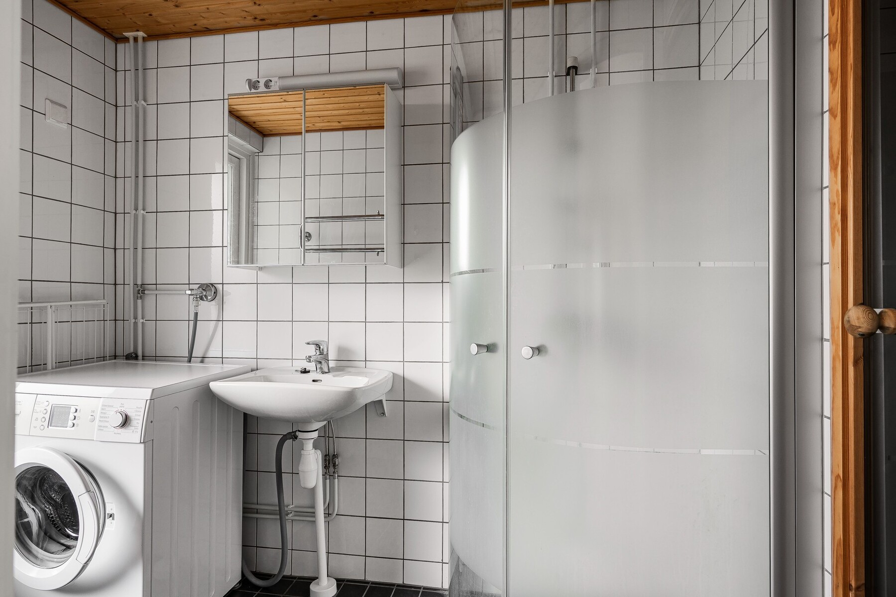 Varusteet: suihku, suihkuseinä, pesukoneliitäntä, peilikaappi, lattialämmitys, pesukone
