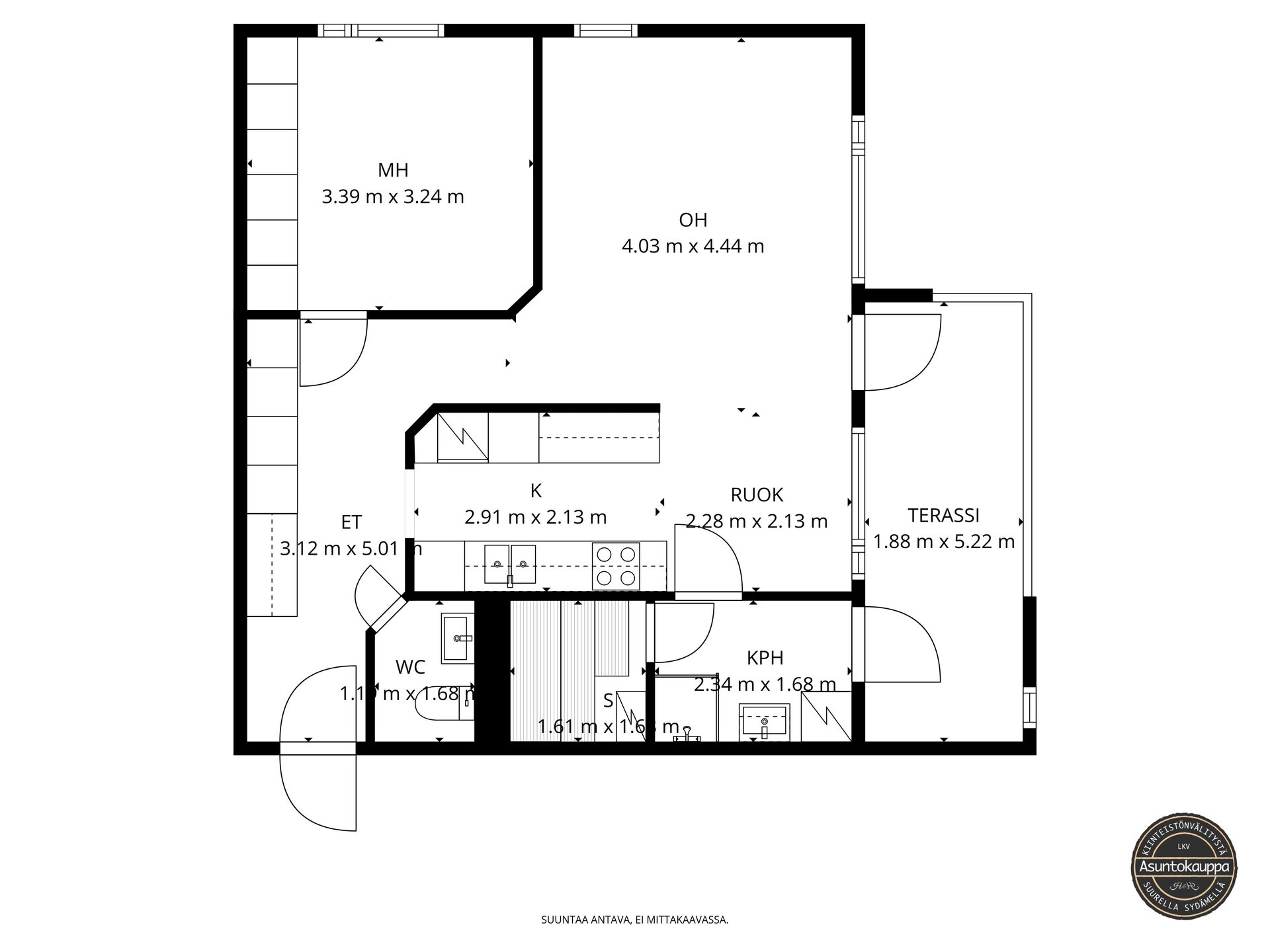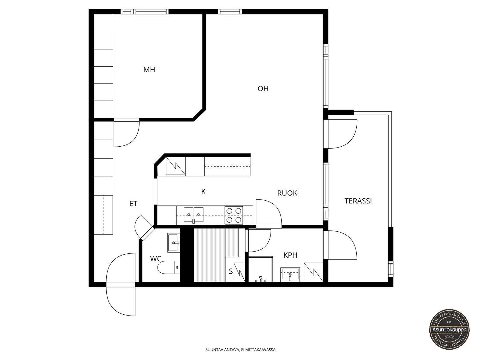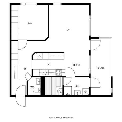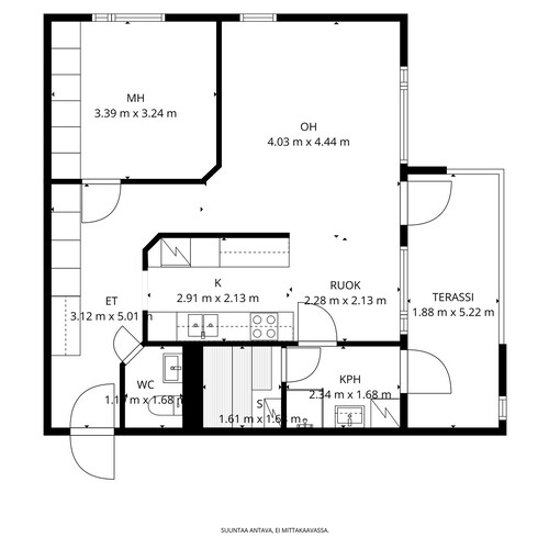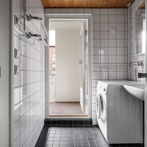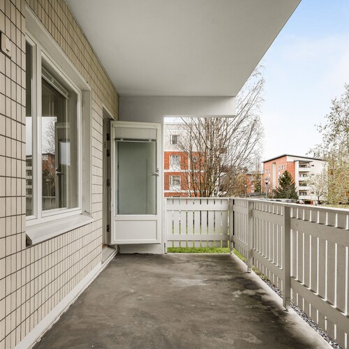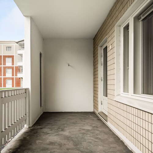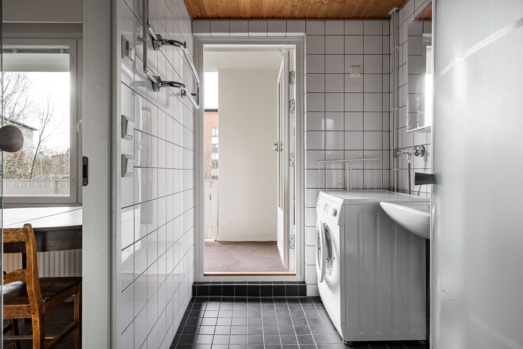 – Terassiparvekkeelle käynti olohuoneesta ja pesuhuoneesta.
