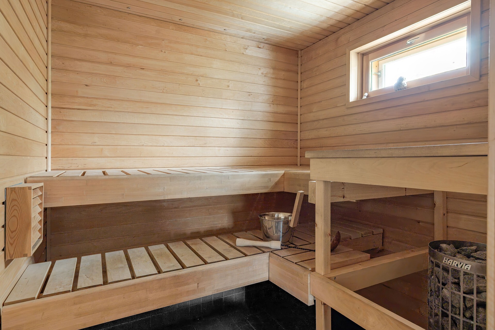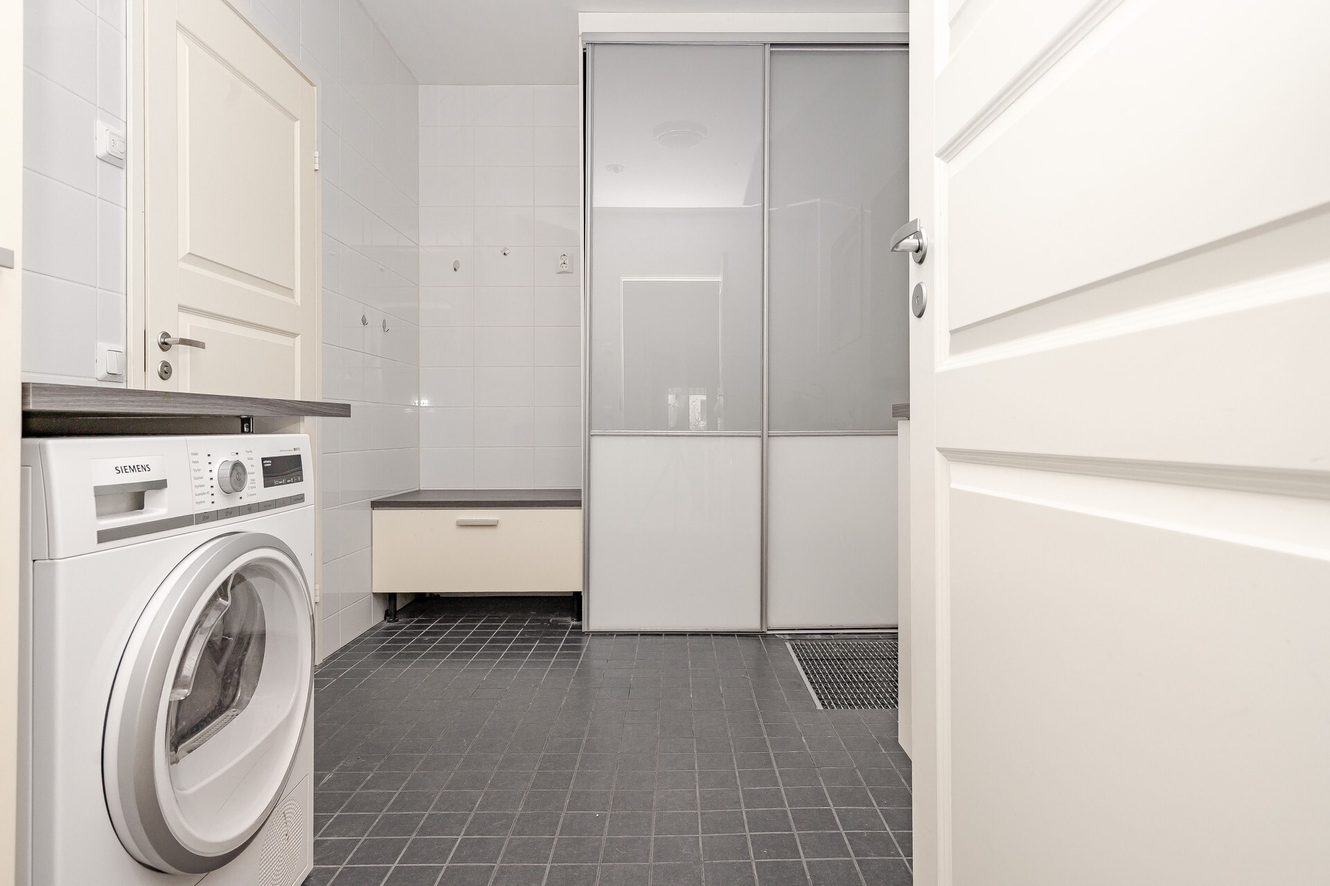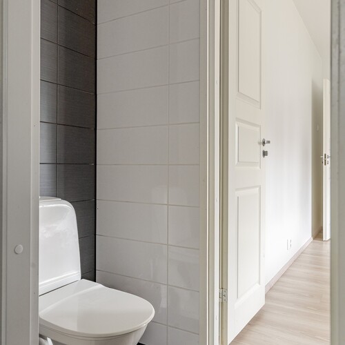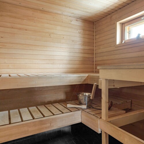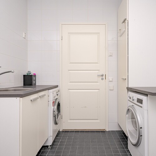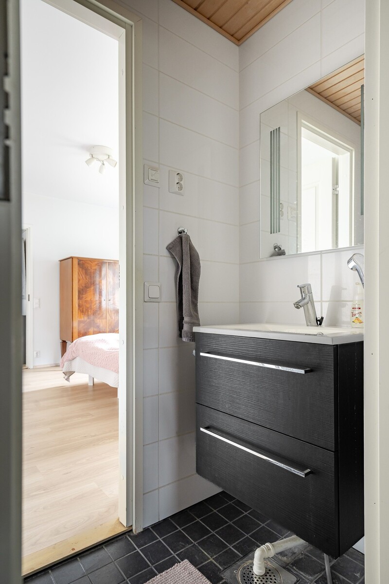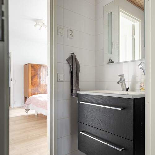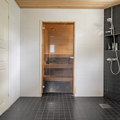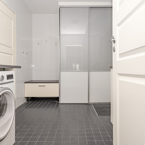 – Kaksi erillistä wc-tilaa ja tilava saunaosasto kodinhoitohuoneineen tekevät asumisesta sujuvaa.