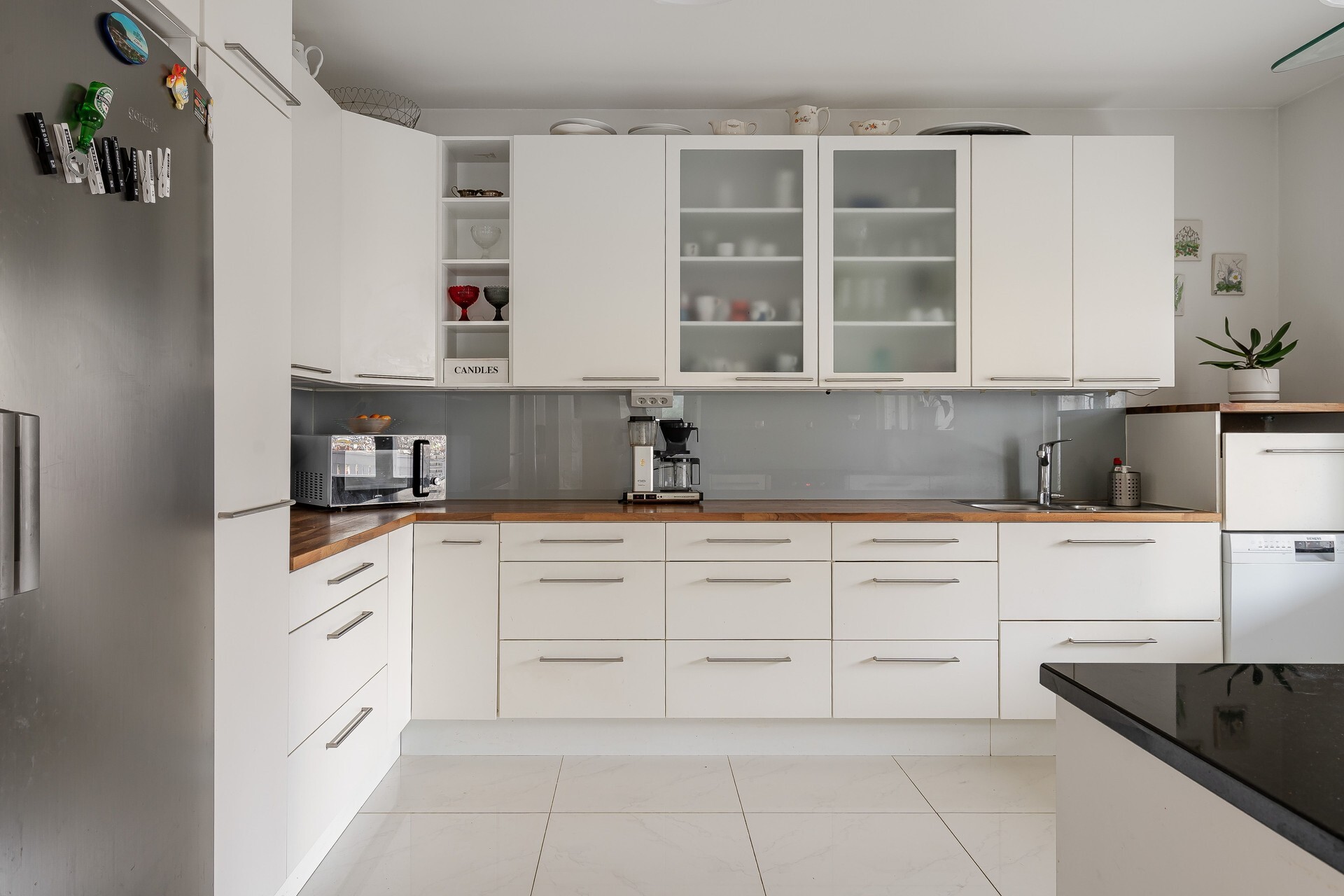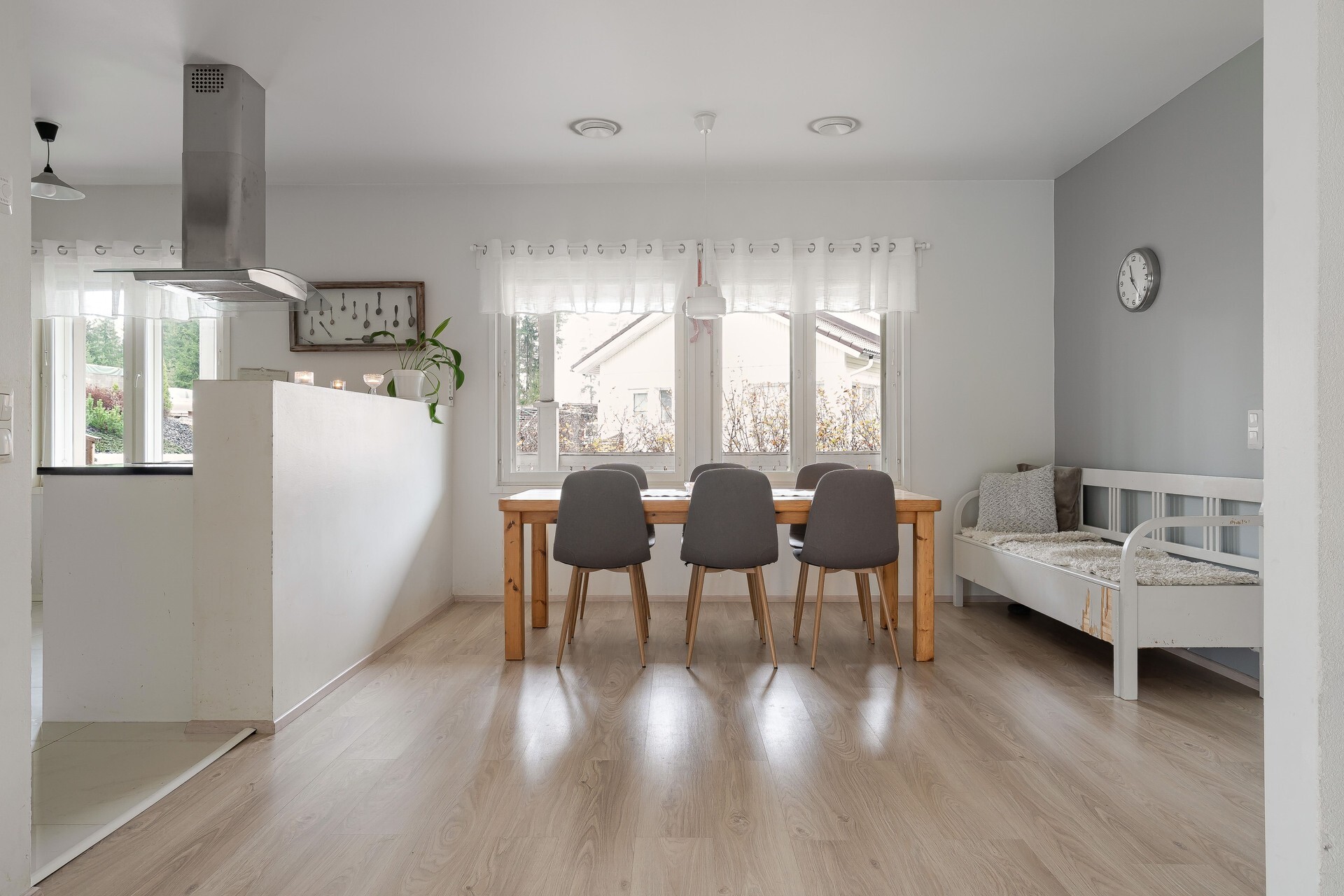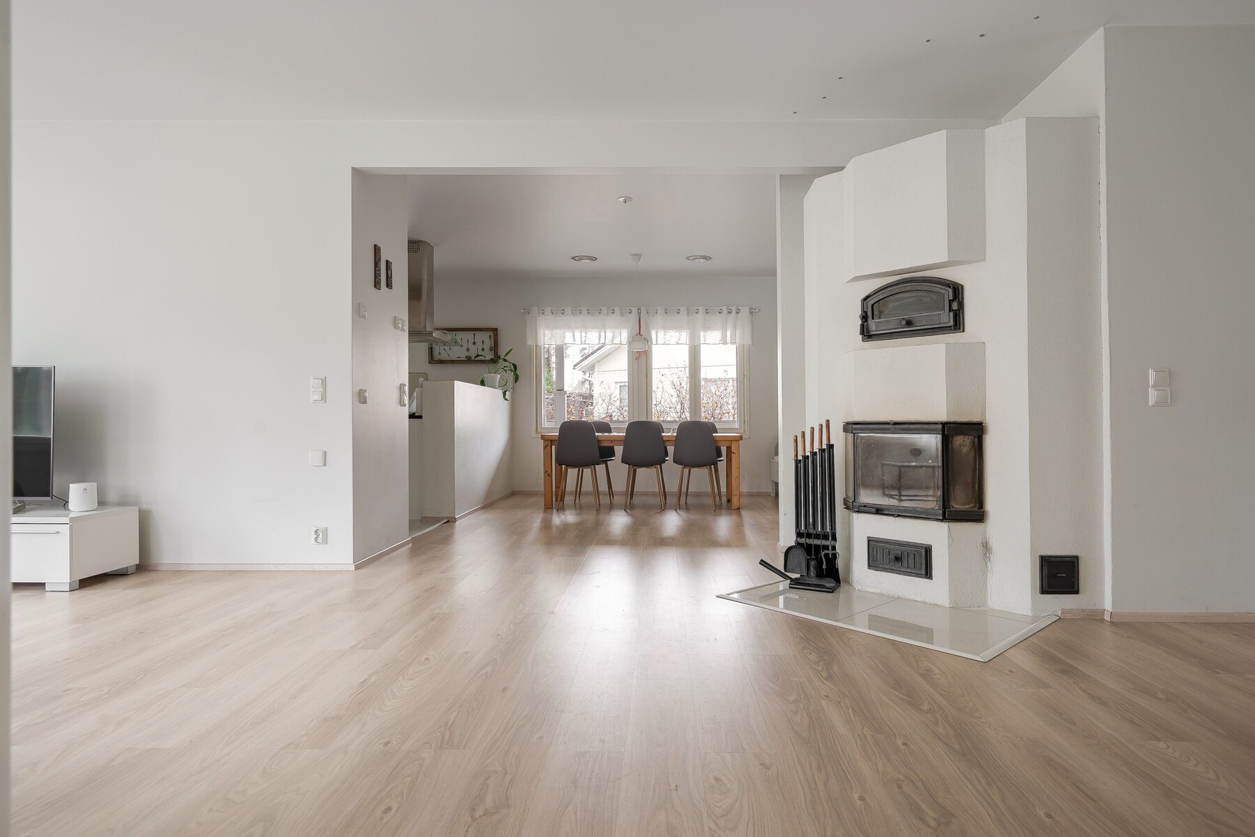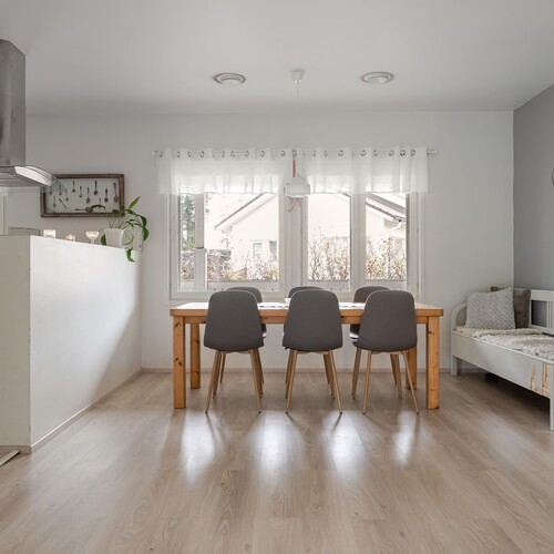 – Kodin sydämenä toimii saarekkeellinen keittiö, joka yhdistyy ruokailutilaan – täydellinen paikka perheen yhteisille hetkille.