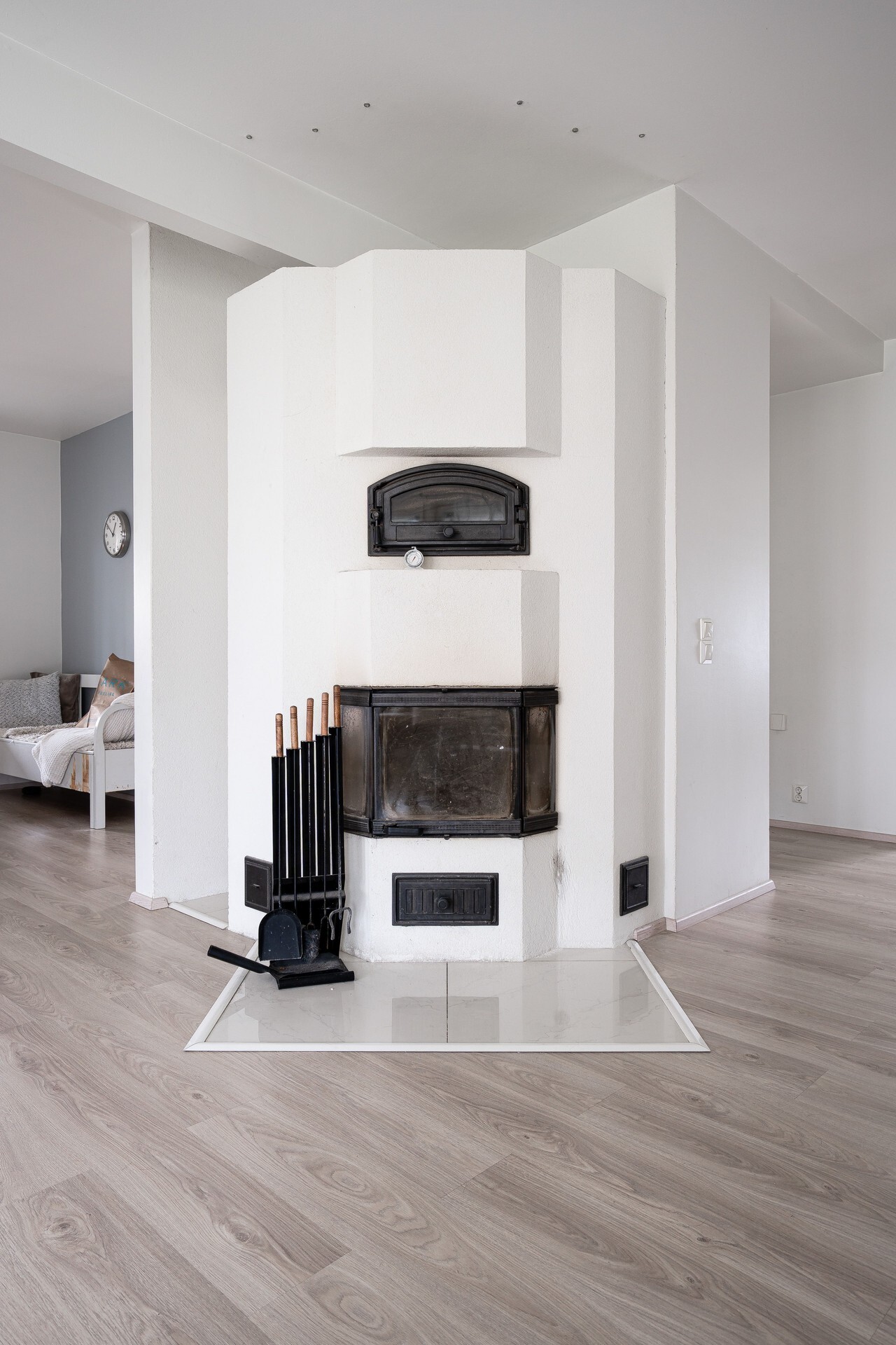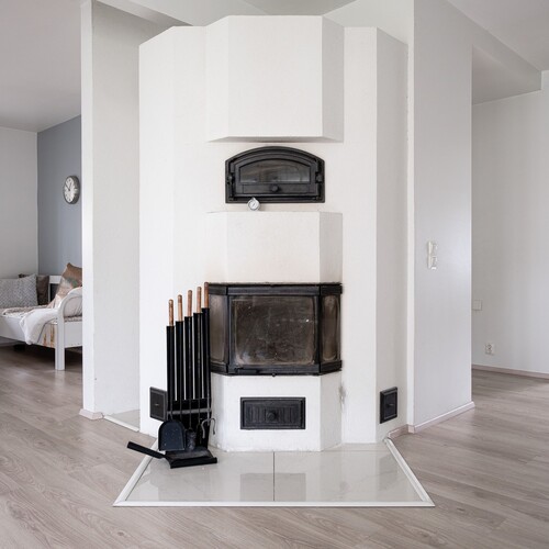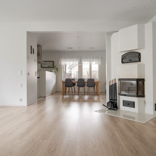 – Sähköinen lattialämmitys kaikissa tiloissa sekä lisäksi olohuoneessa varaava takka/leivinuuni ja ilmalämpöpumppu.