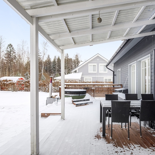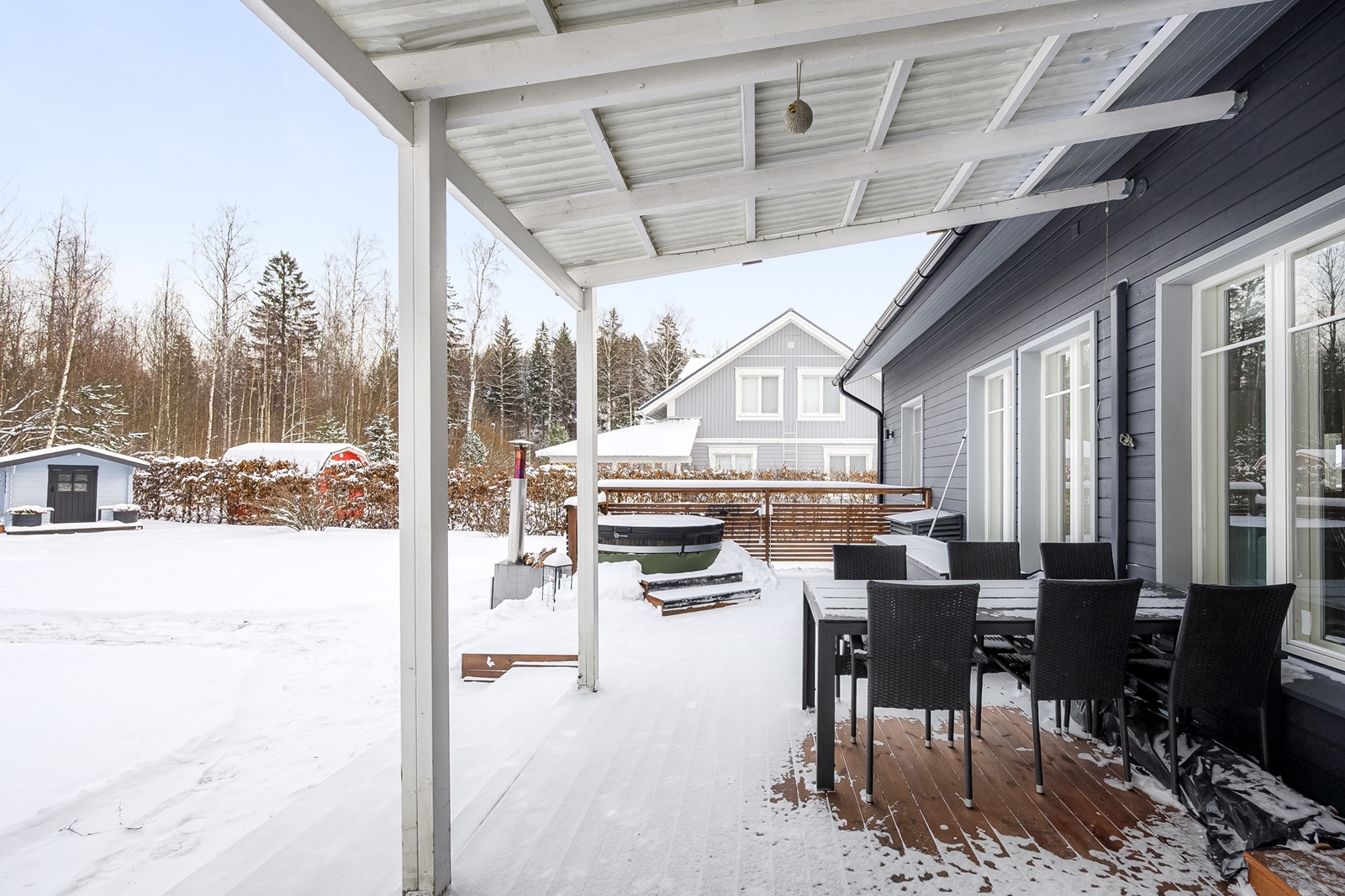 – Kiramin palju takaterassilla ja leikkimökki tuovat lisää elämyksiä perheen vapaa-aikaan.