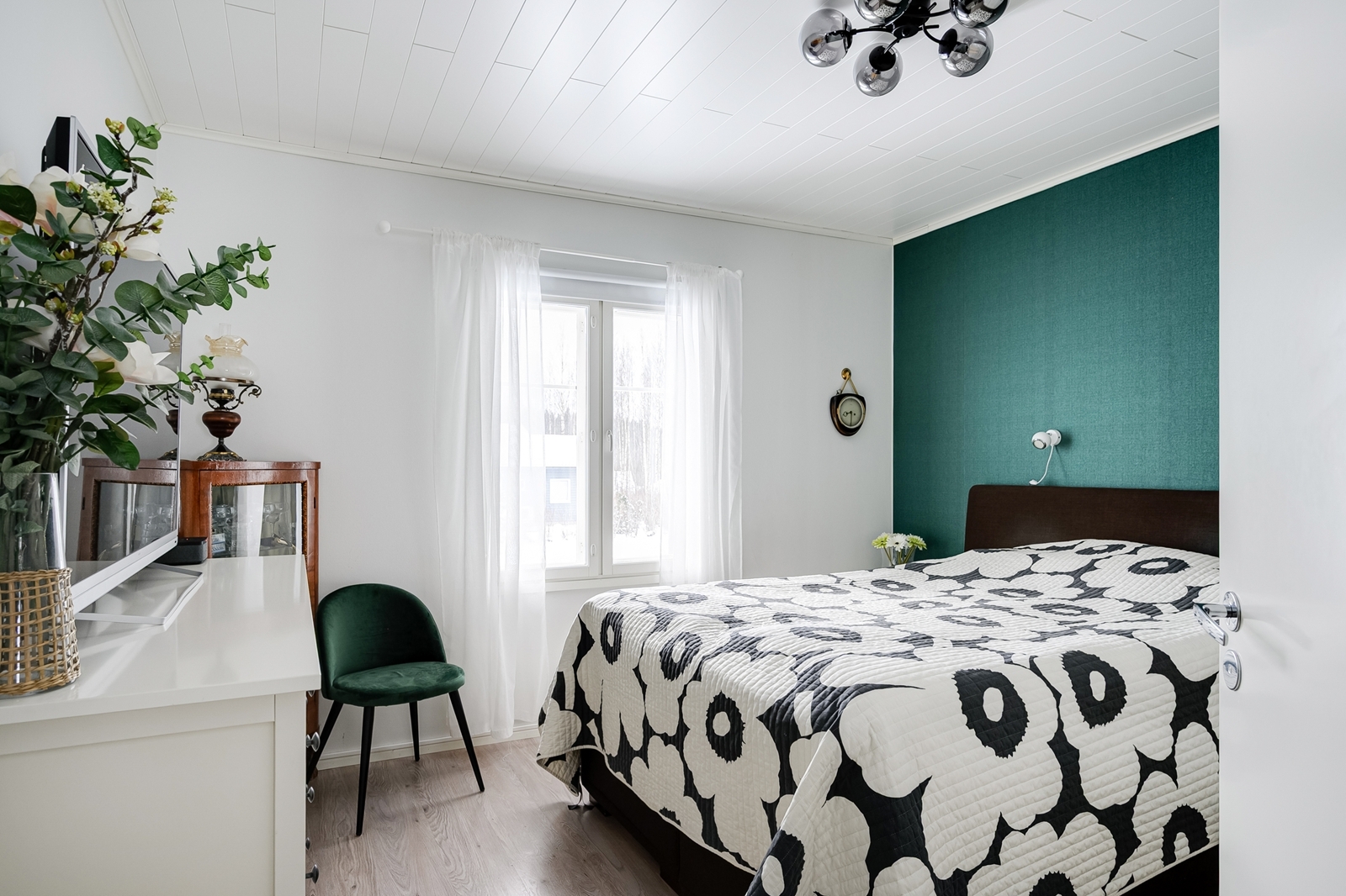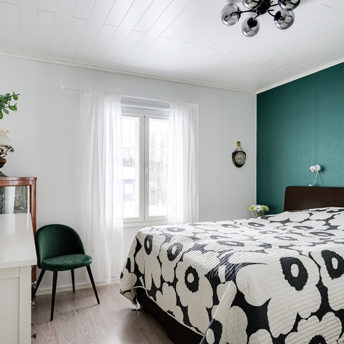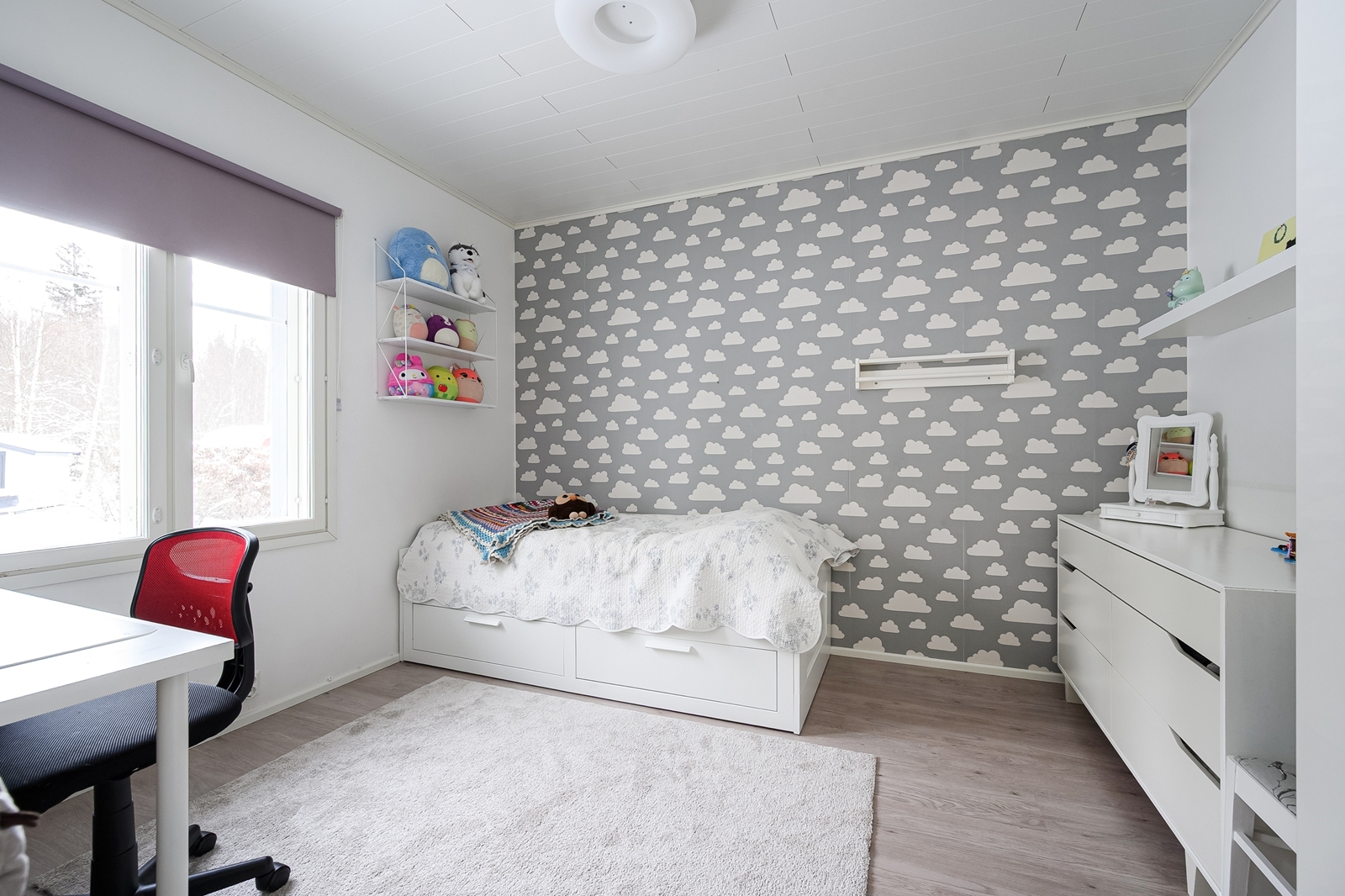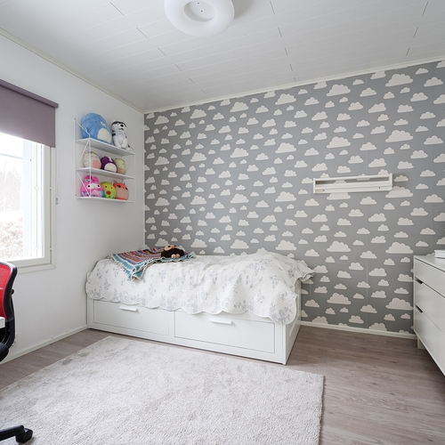 - 2024 yhden makuuhuoneen seinä tapetoitu