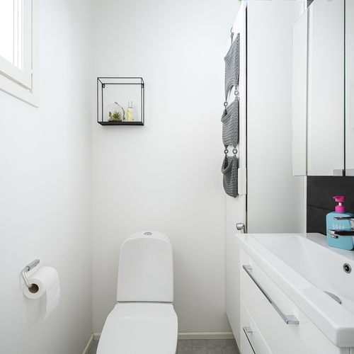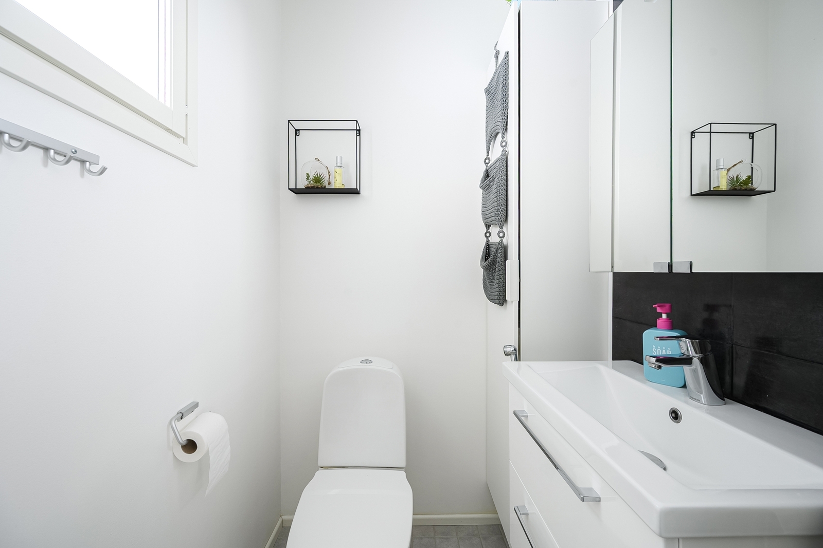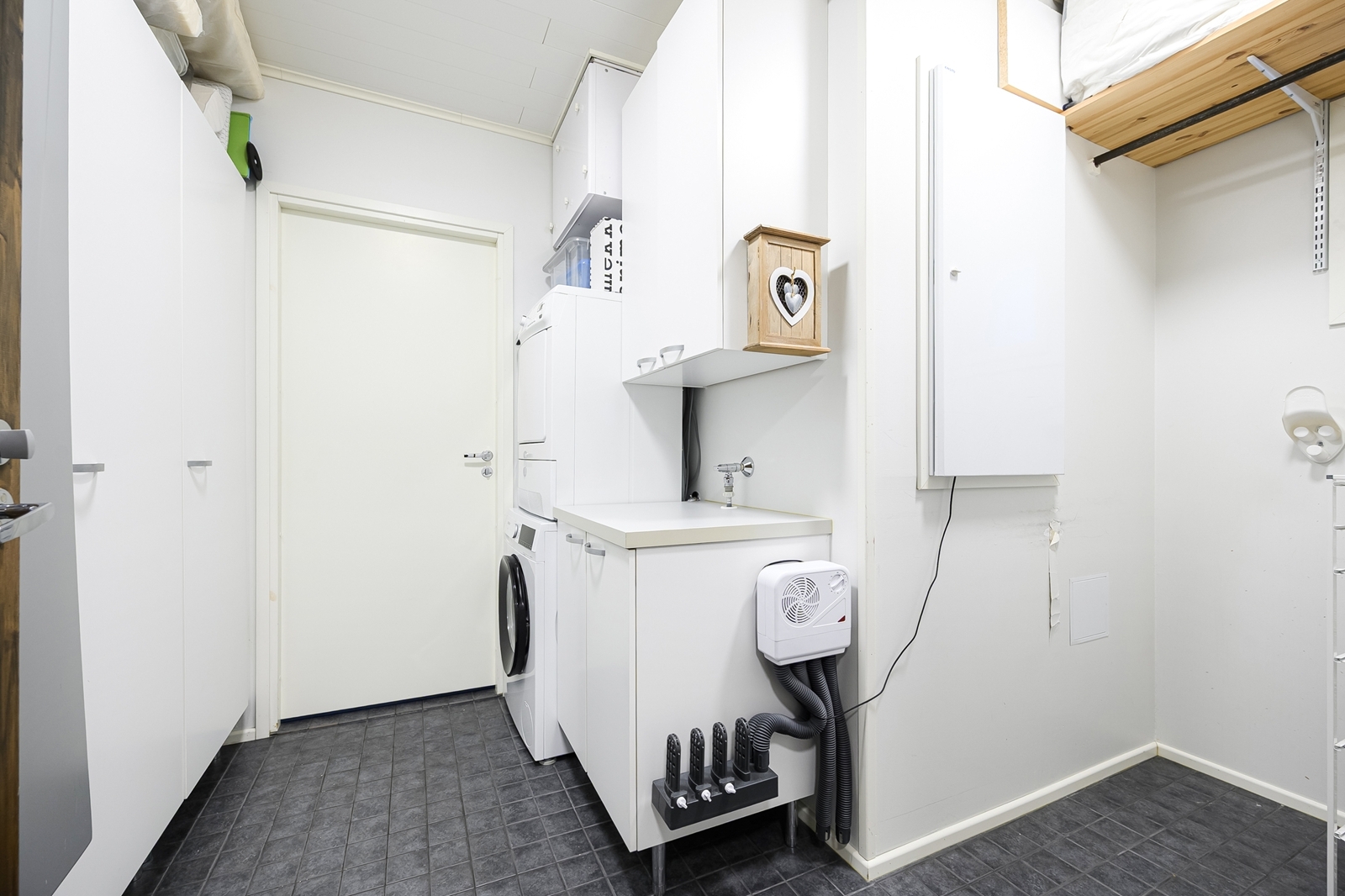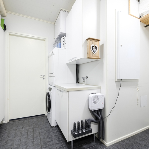 Varusteet: pesukoneliitäntä, lattialämmitys, pyykkikaapit, pöytätaso