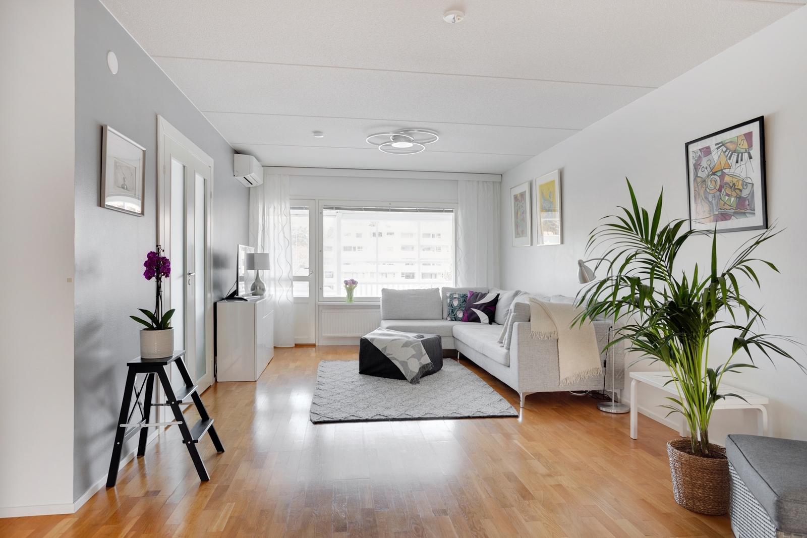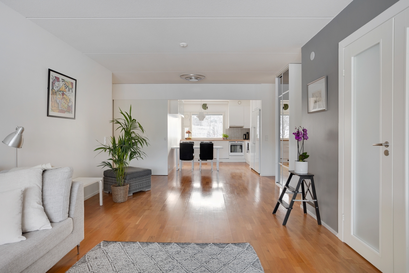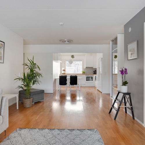 – Tähän läpitalon huoneistoon tulvii luonnon valo kauniisti isoista ikkunoista.