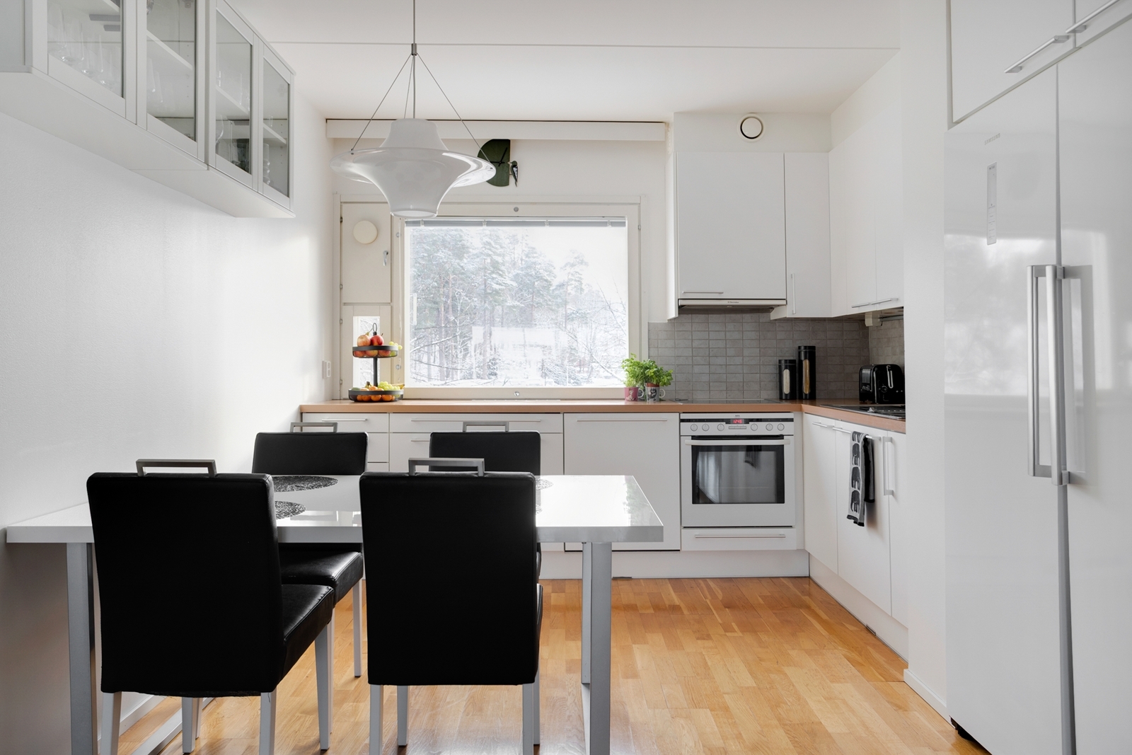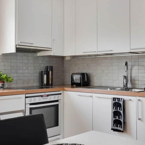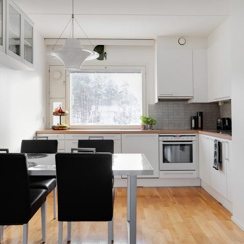 Varusteet: jääkaappi, pakastin, astianpesukone, keraaminen liesi, erillisuuni, liesituuletin
