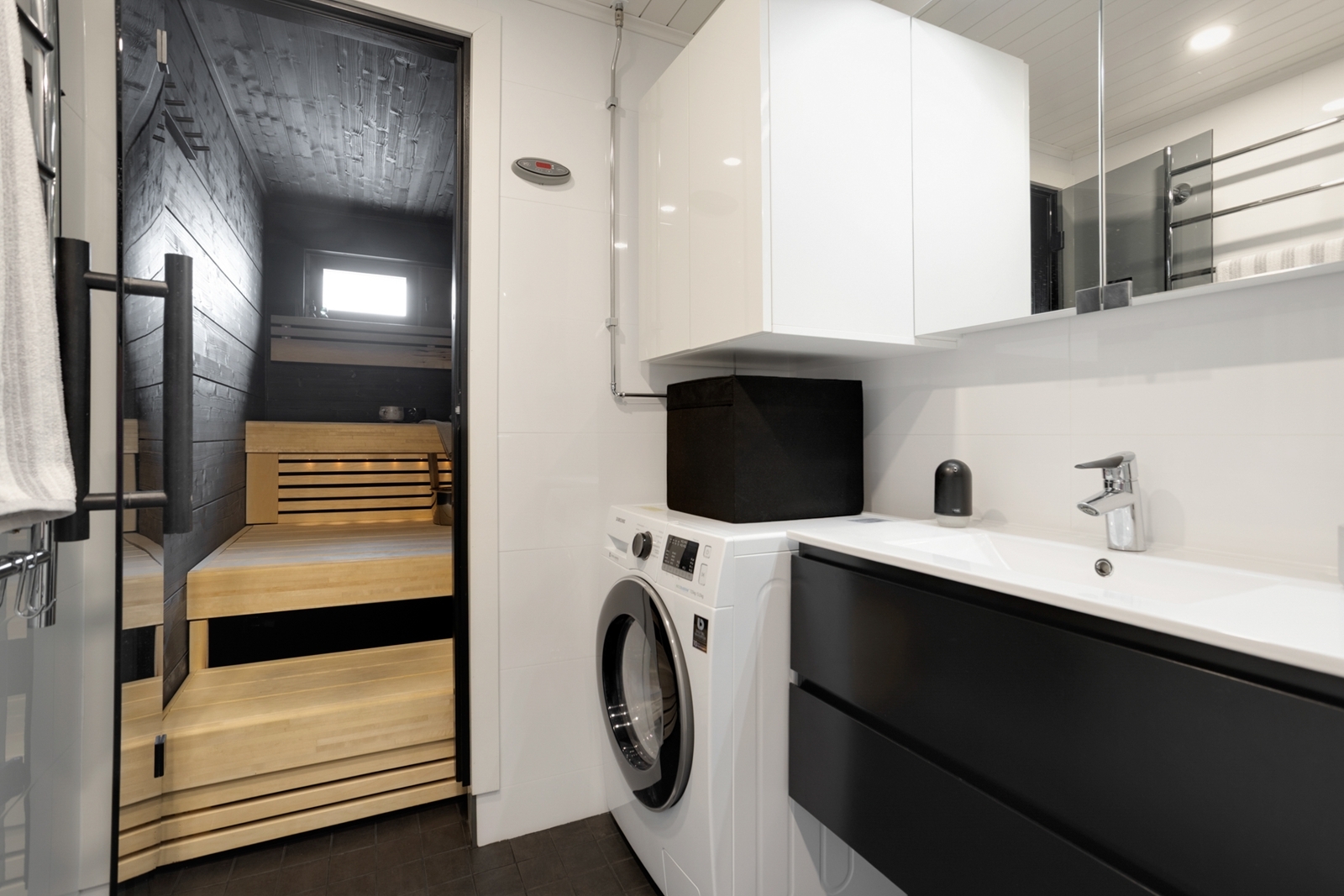 Varusteet: sähkökiuas, ikkuna ulos, lattiakaivo, valokuituvalaistus