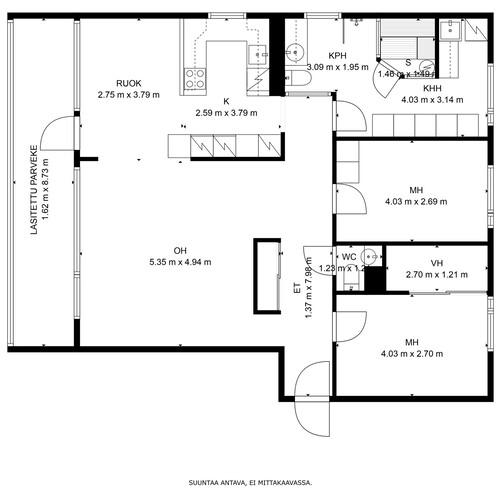 3h, k, kph, s, khh, 2 WC, vaatehuone, lasitettu parveke