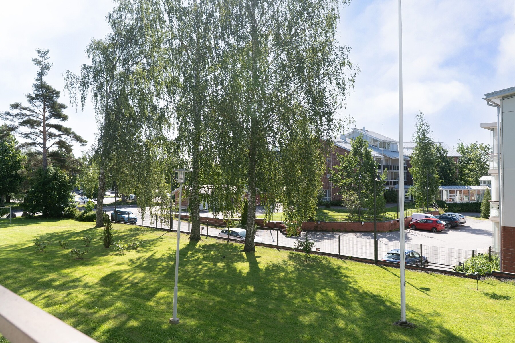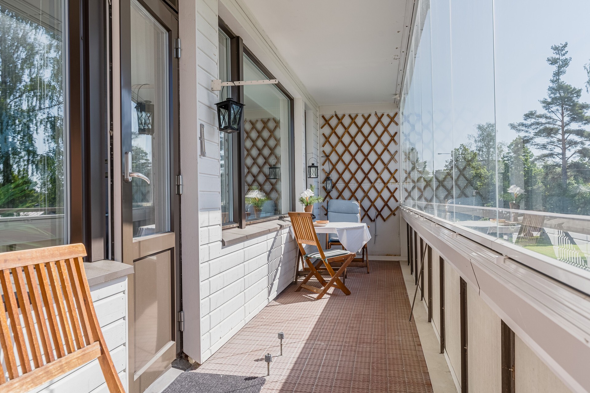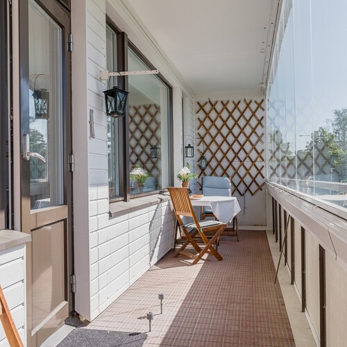 – lasitettu parveke, josta rauhalliset näkymät