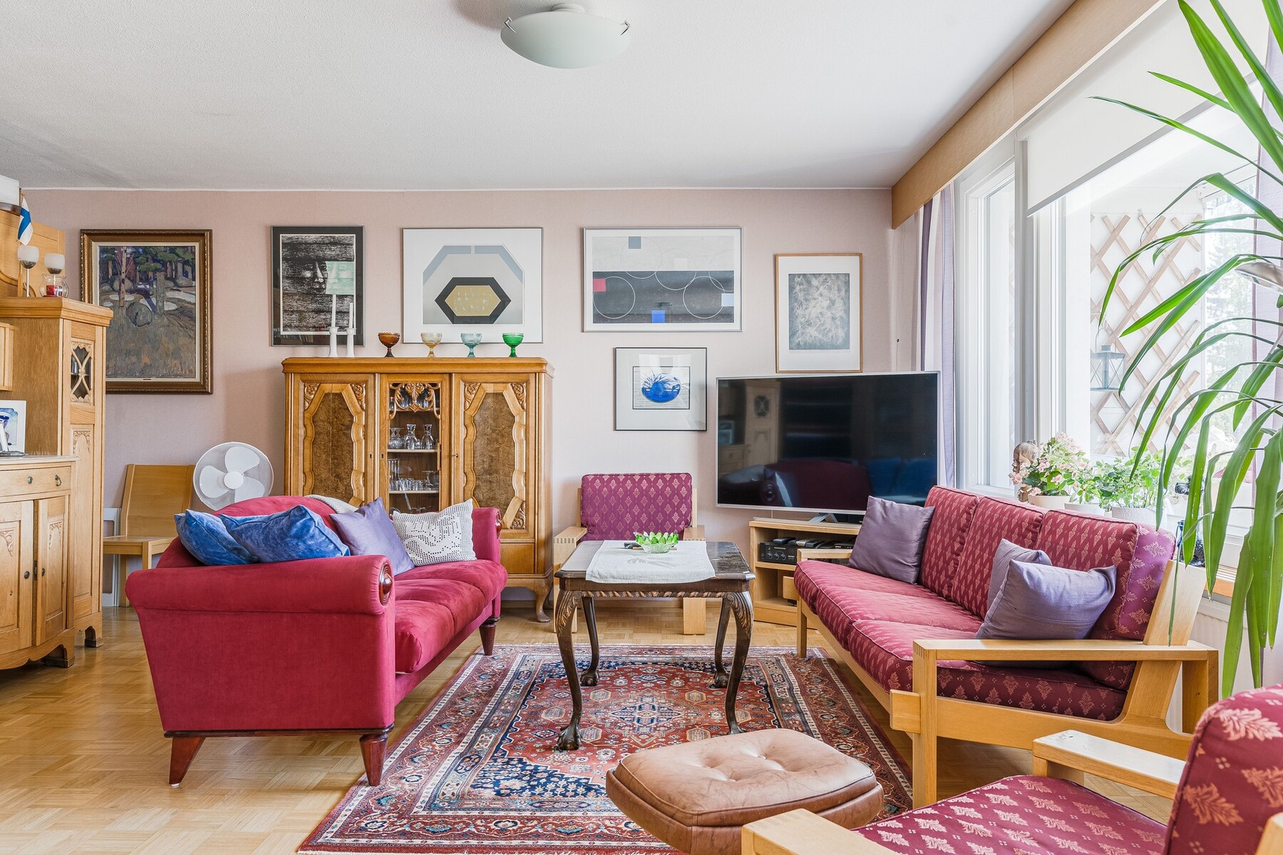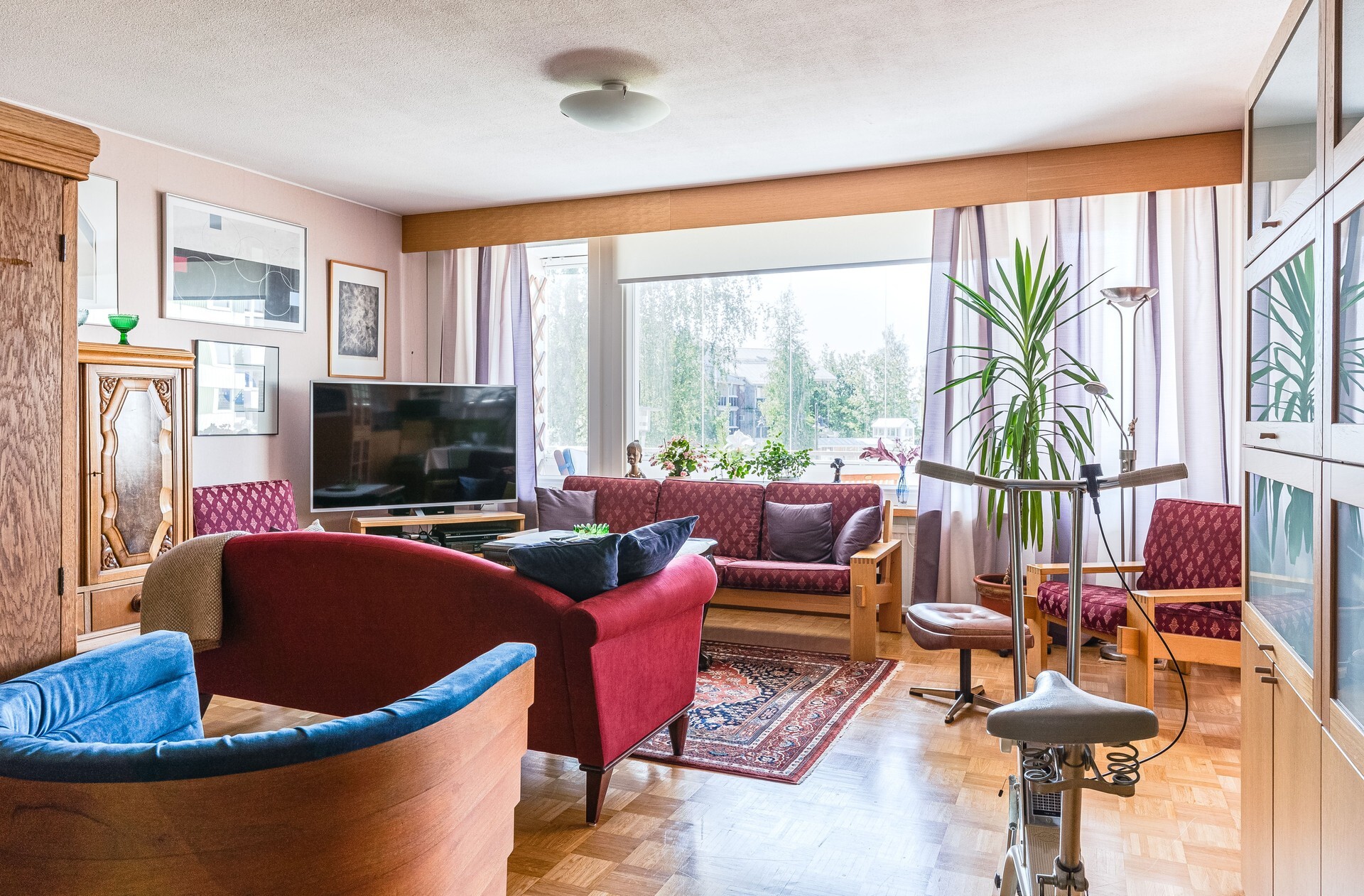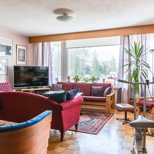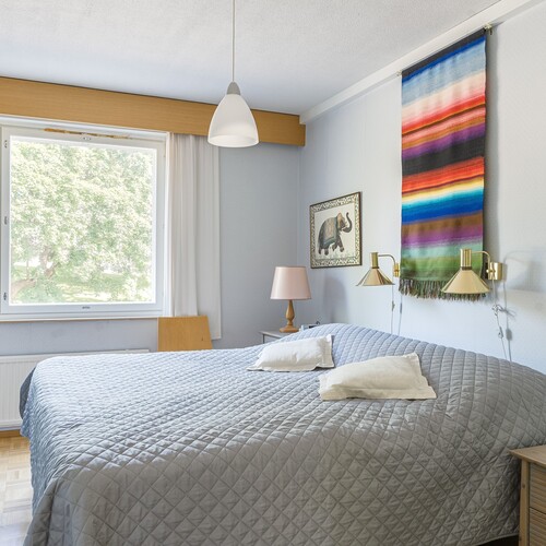 – asuntoon saatu hulppeat tilat kun neljä makuuhuonetta on muutettu kahdeksi makuuhuoneeksi