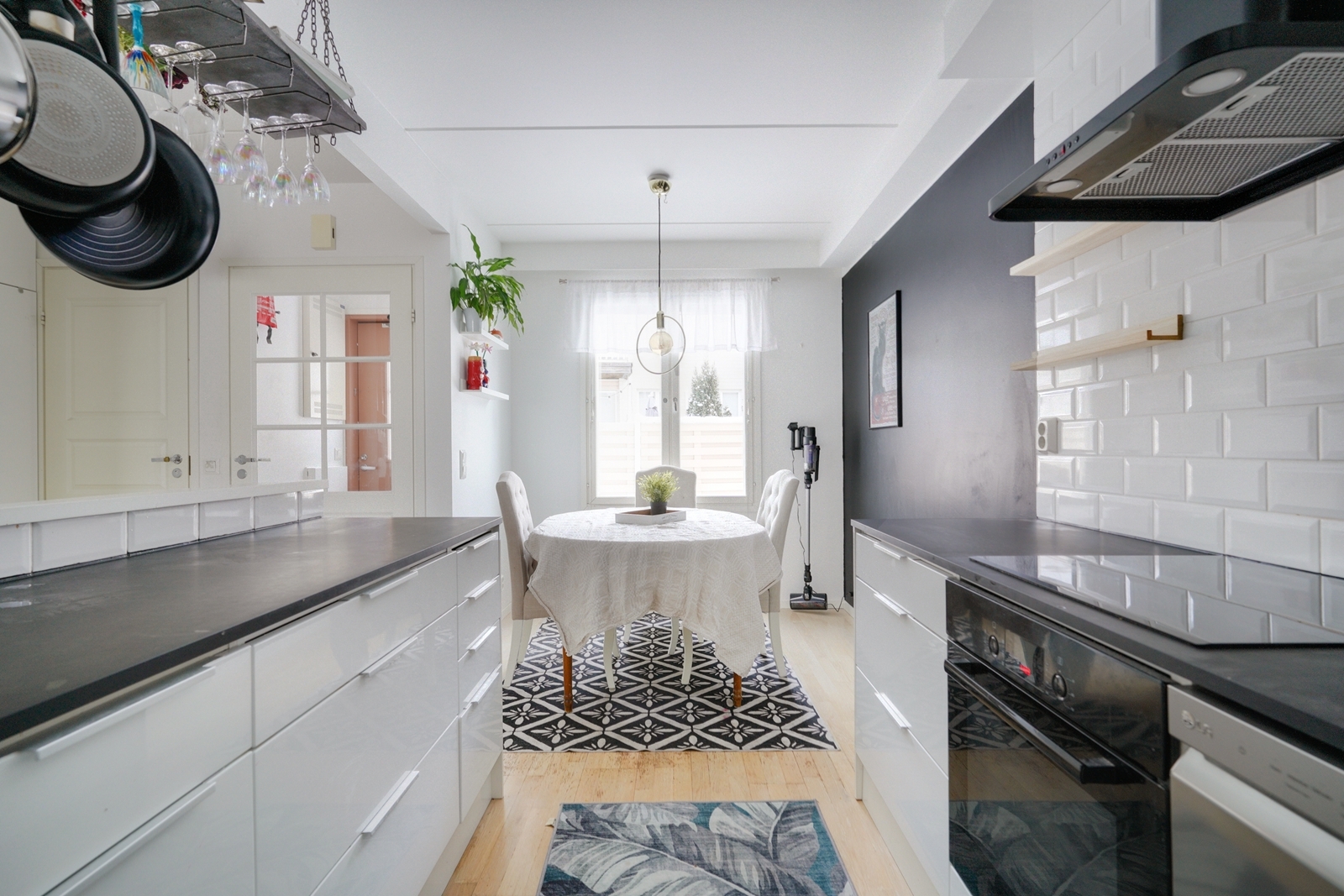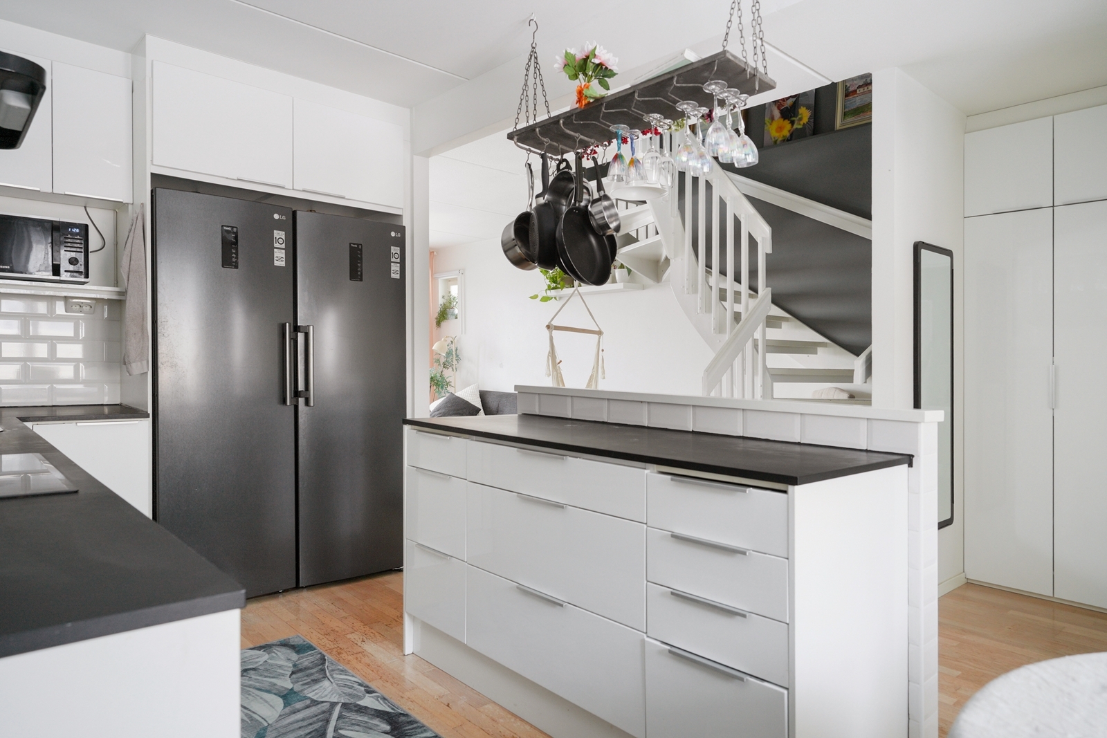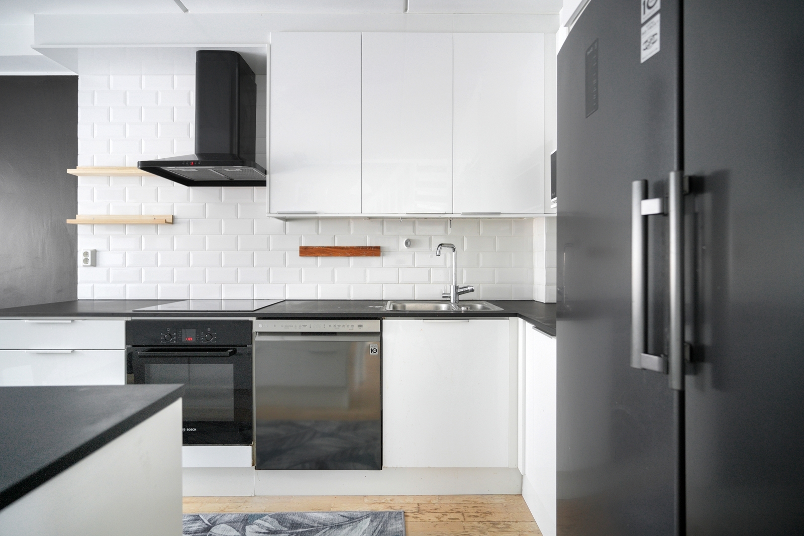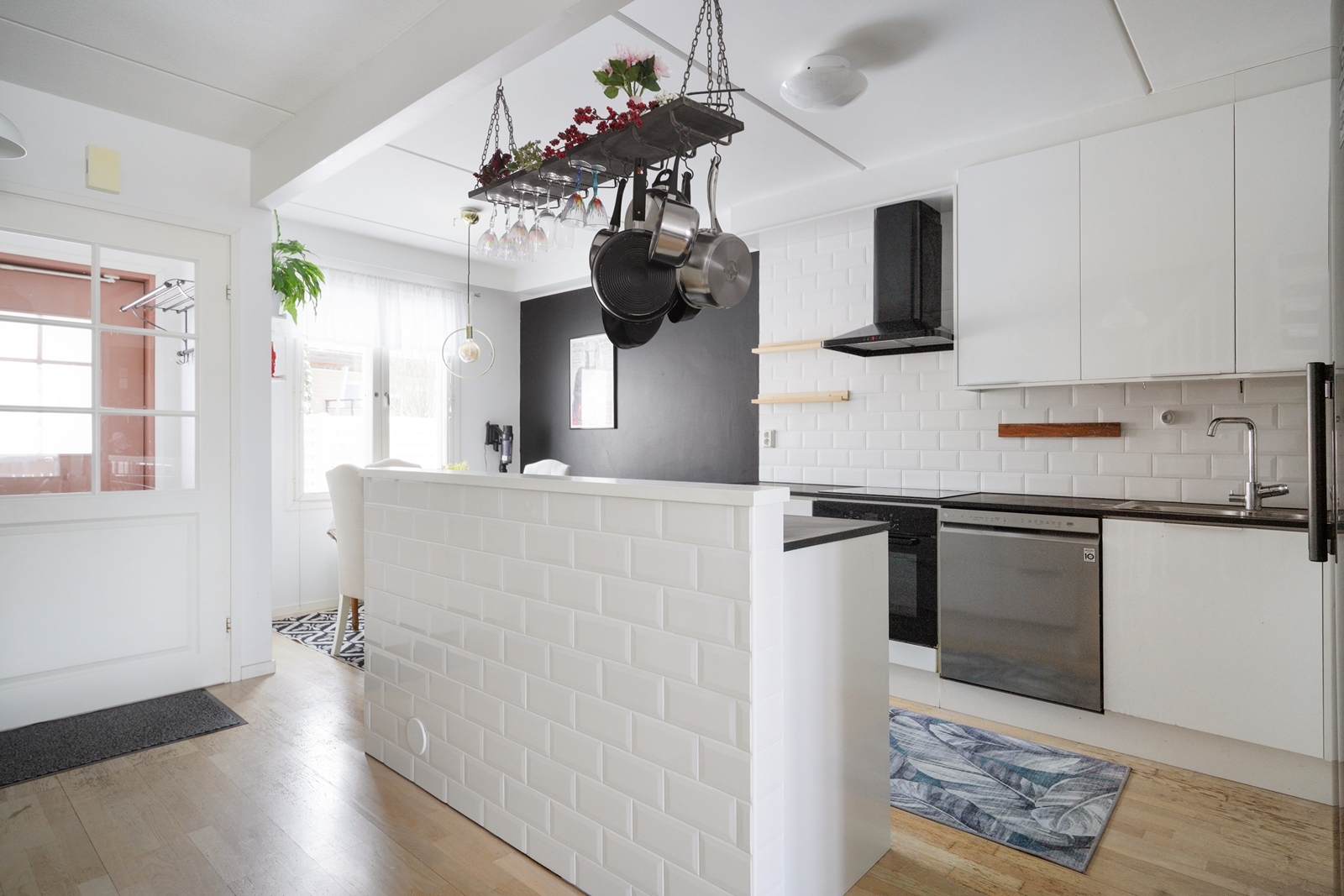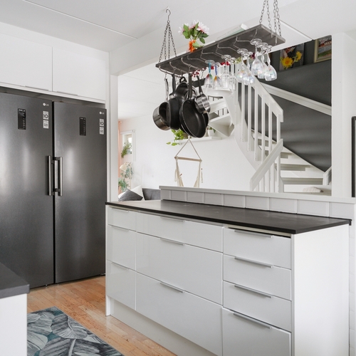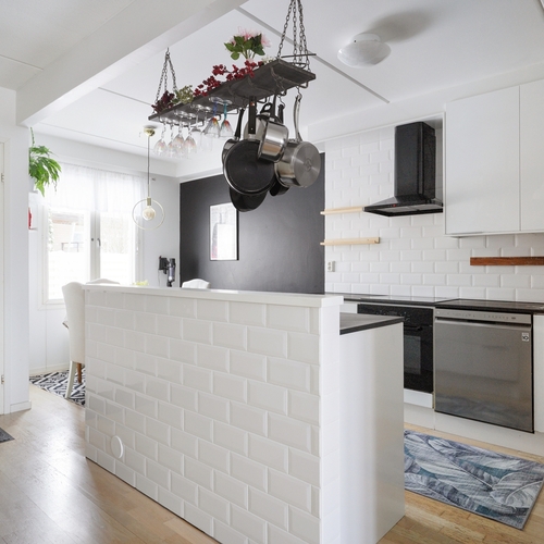Varusteet: liesituuletin, induktioliesi, erillisuuni, jääviileäkaappi, pakastin, astianpesukone