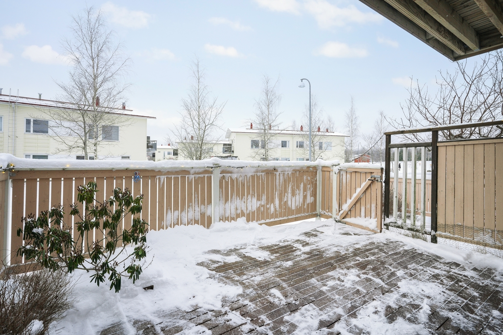 – Parveke ja piha etelän suuntaan.