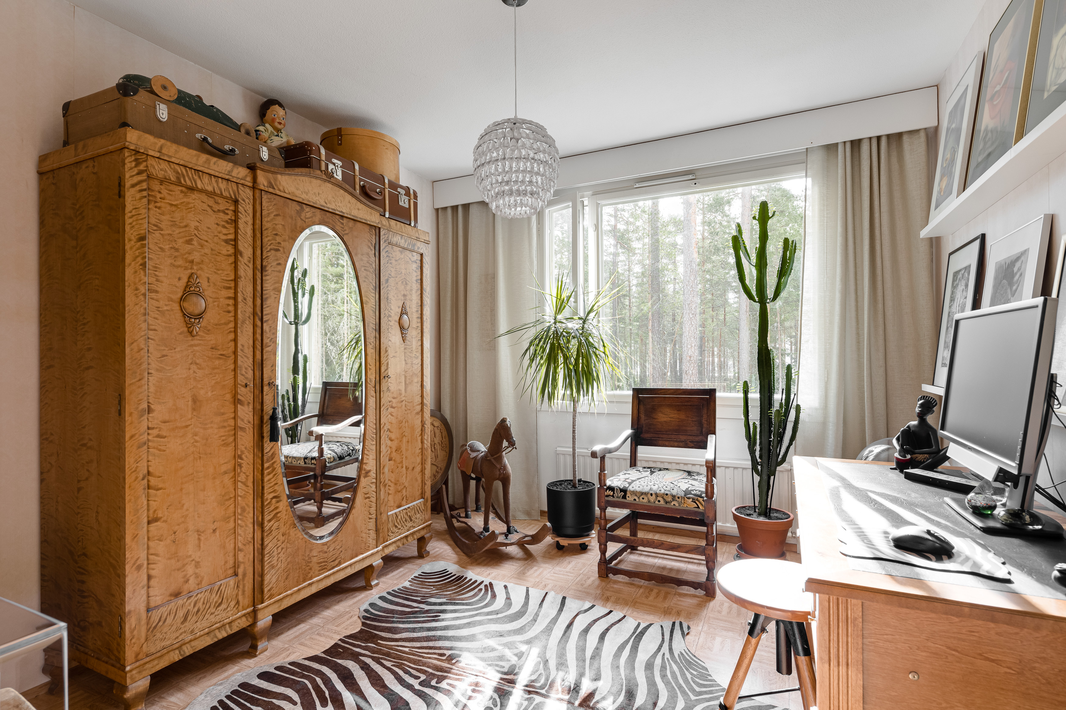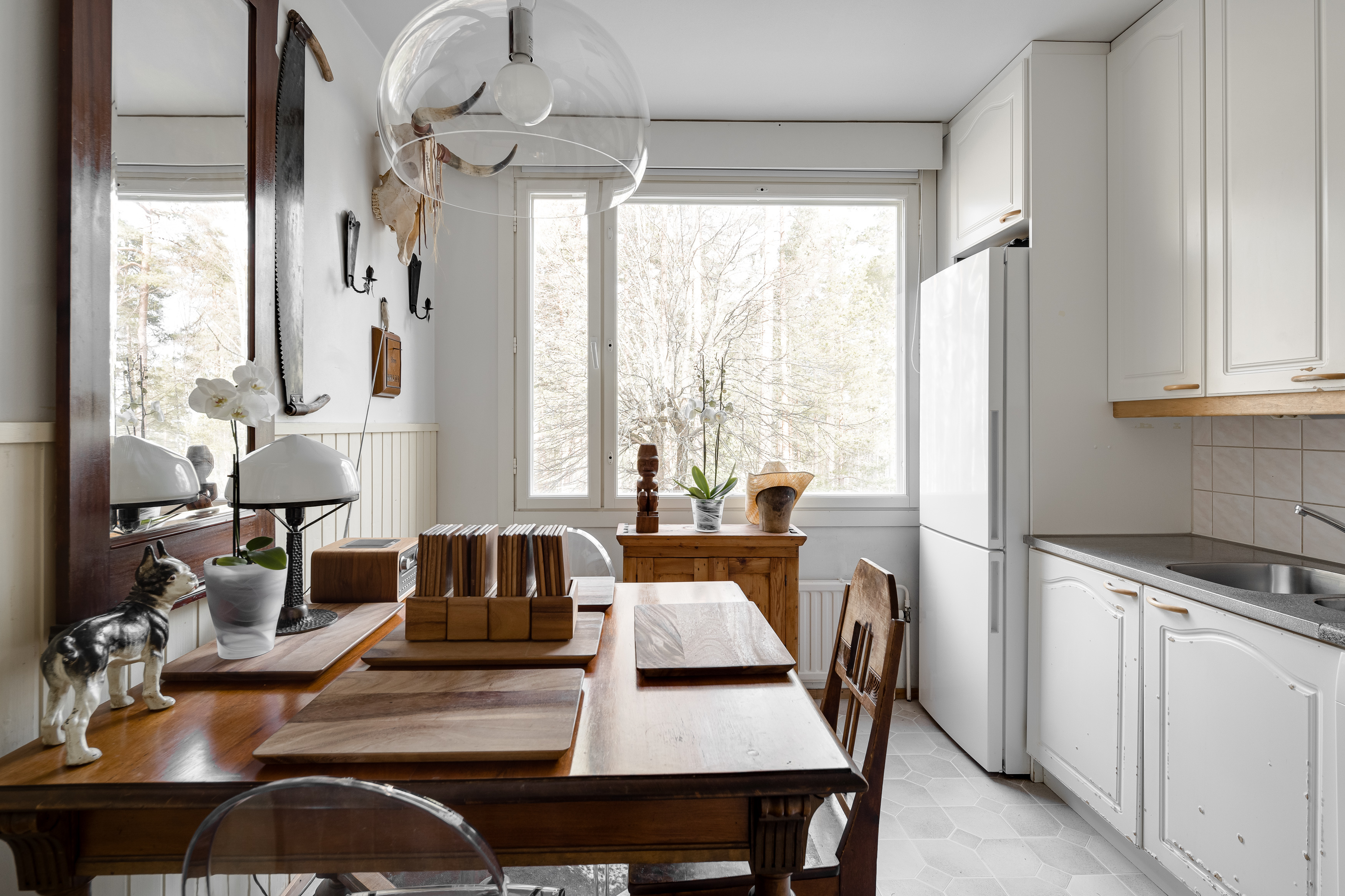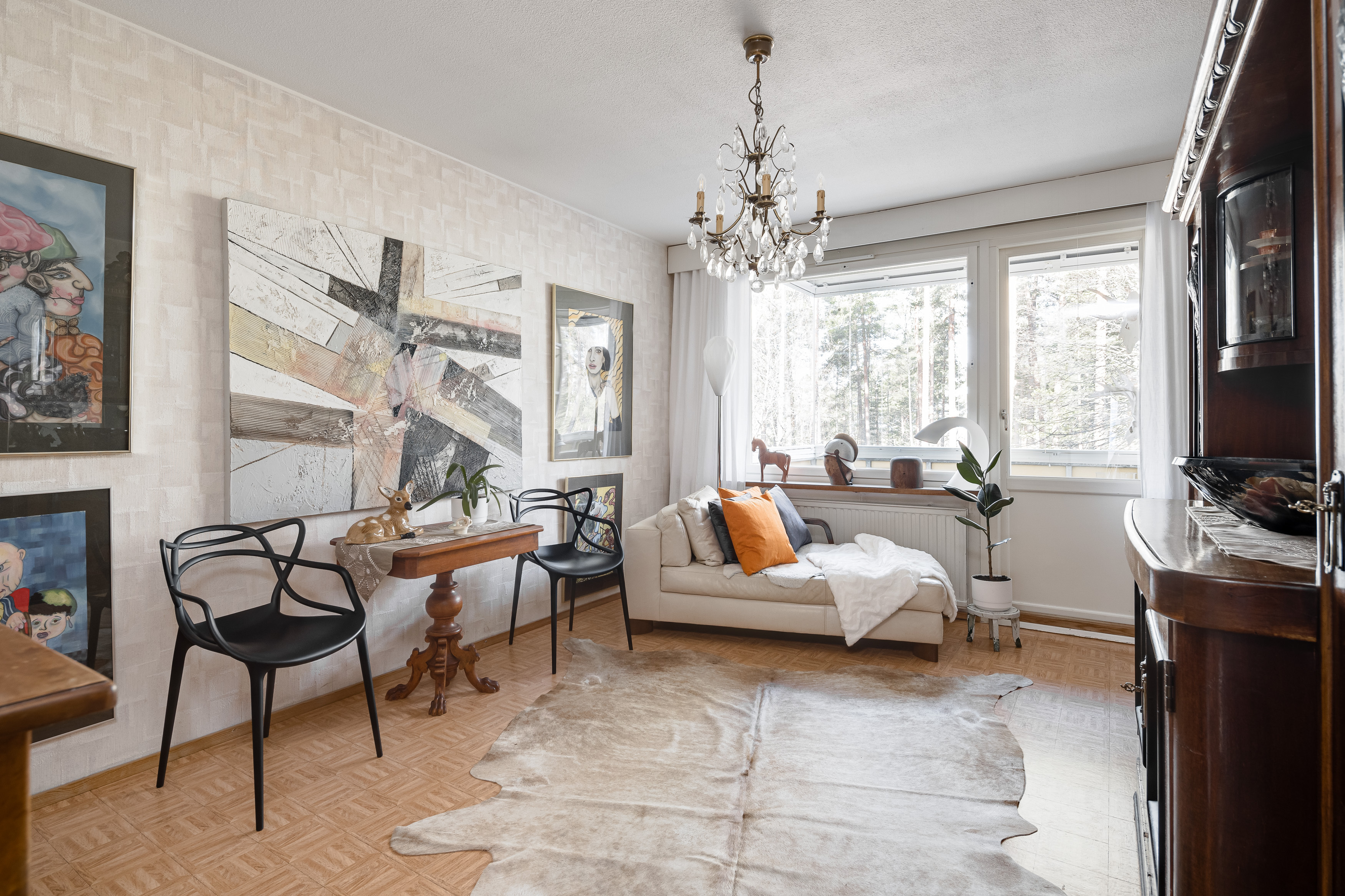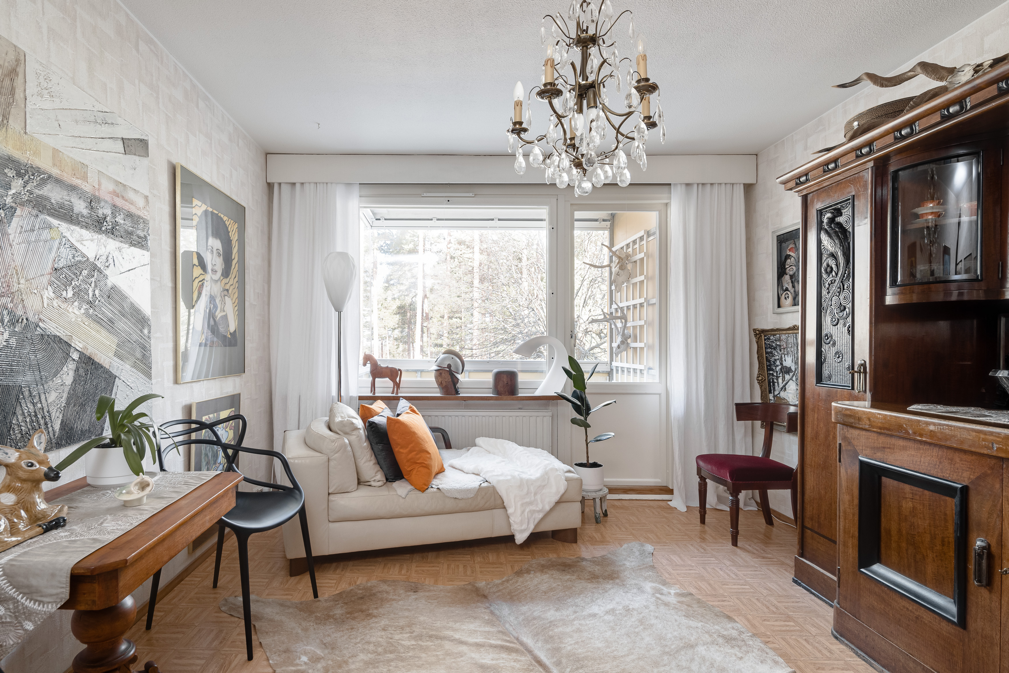 – iso olohuone on vaaleansävyinen ja ikkunoista tulvii luonnon valo kauniisti