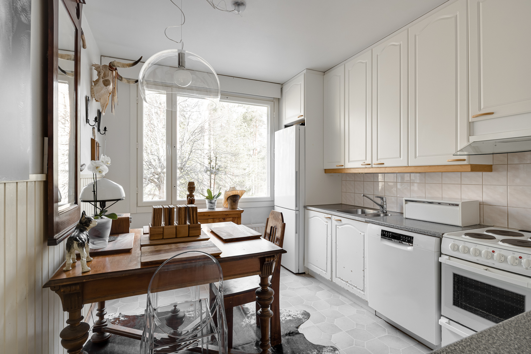 Varusteet: jääkaappipakastin, sähköliesi, astianpesukone