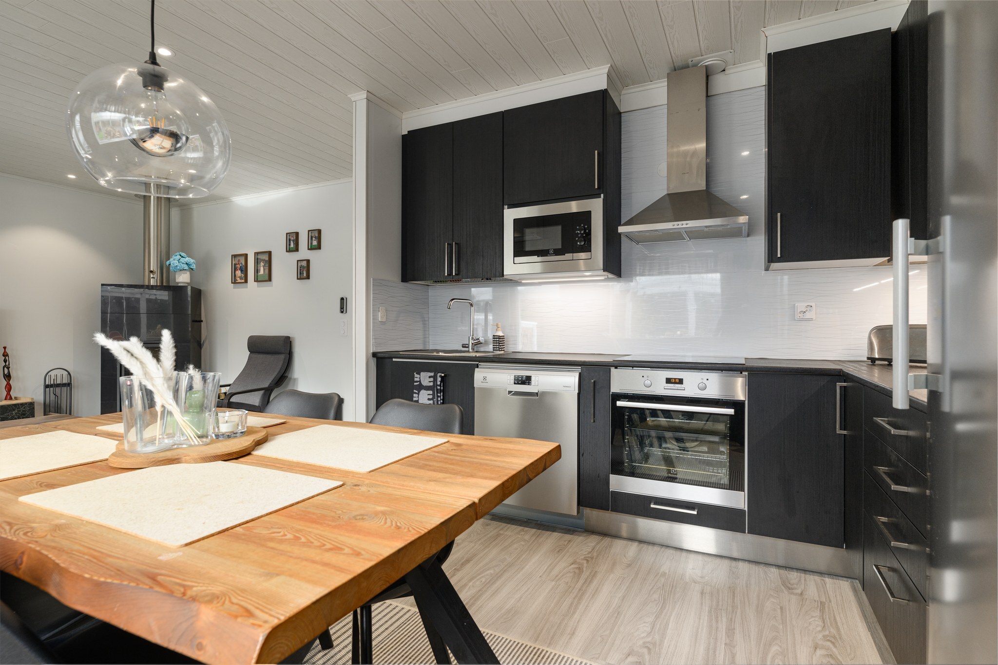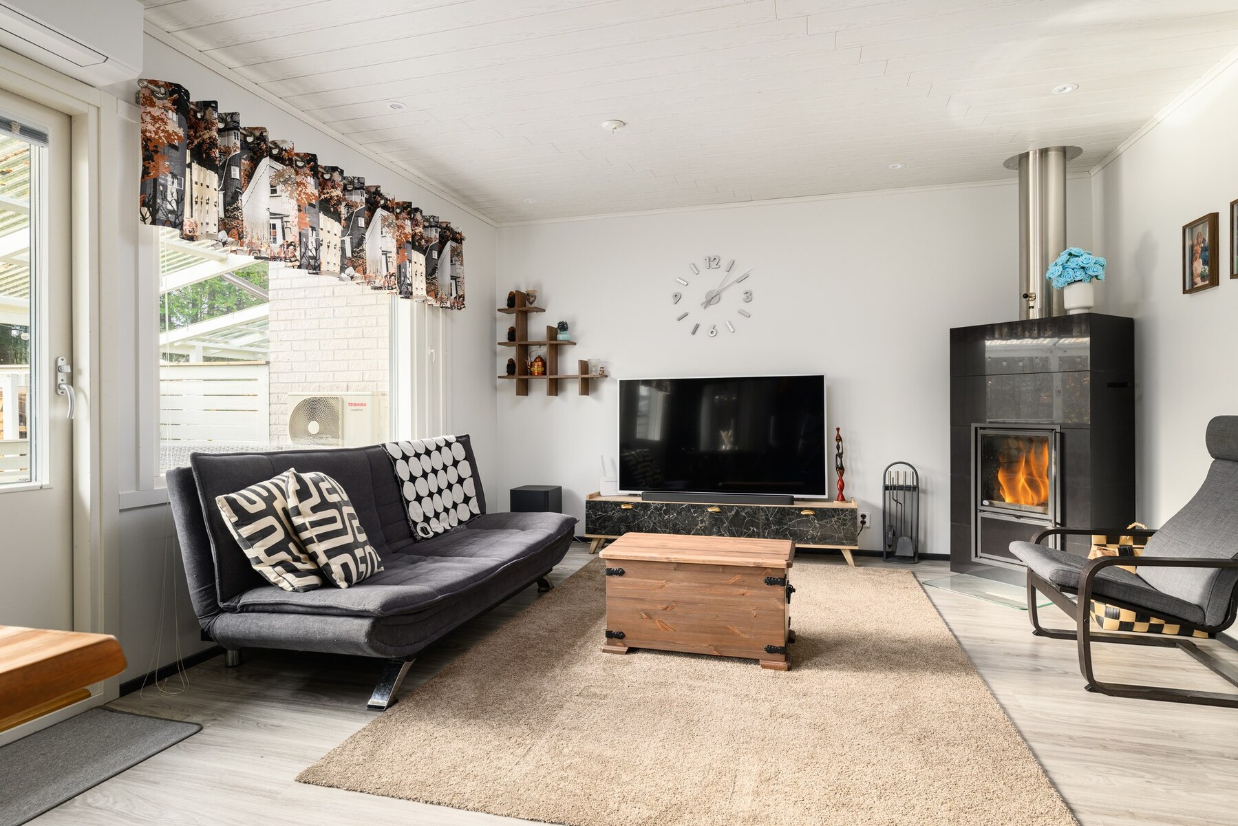 – Alakerrasta löydät kaikki arjessa tarvittavat tilat toimivassa kokonaisuudessa: moderni keittiö, makuuhuone sekä valoisa olohuone, jossa lämpöä ja tunnelmaa luo varaava takka