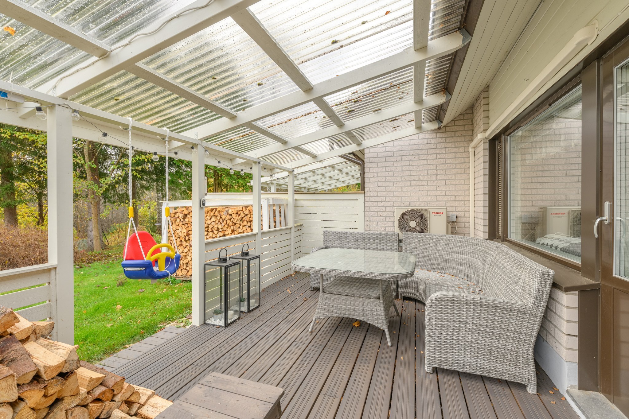– n. 20 m² suuruinen katettu terassi, joka jatkuu omalle piha-alueelle