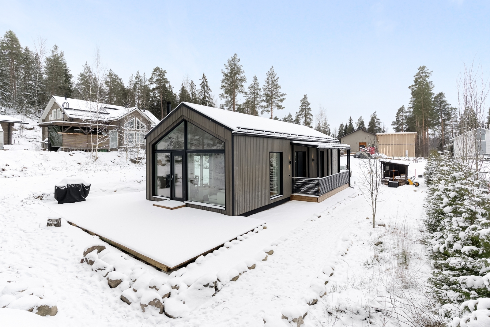 n. 55 m² L-mallinen terassi, joka aukeaa kauniisti metsään