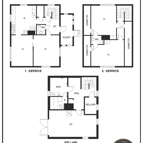 Välipohja: Kellarikerroksen ja ensimmäisen kerroksen välissä on betonirakenteinen (päällä kutterinlastu) välipohja. Ensimmäisen ja toisen kerroksen välissä on puurakenteinen välipohja.