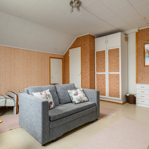 Koneellinen tuloilma olohuoneessa ja alakerran makuuhuoneessa.