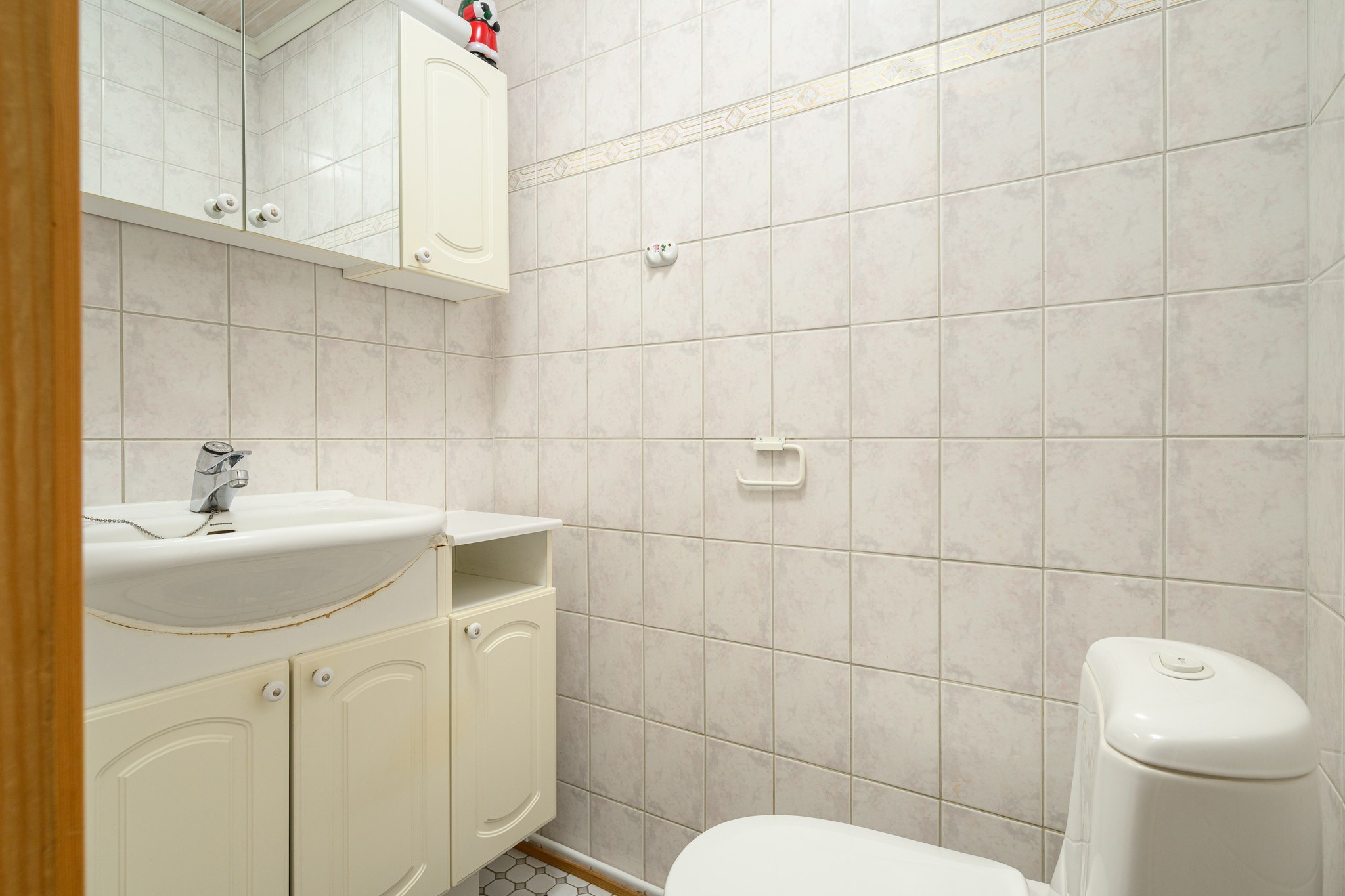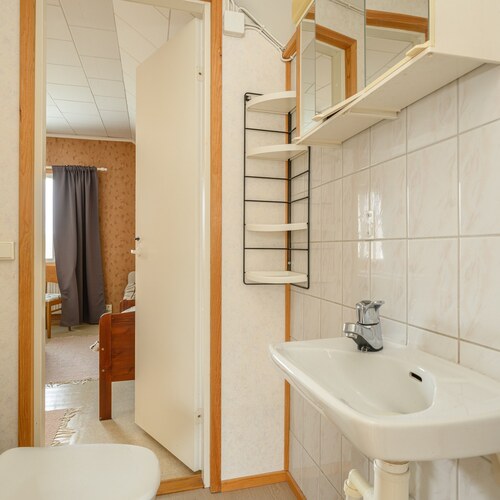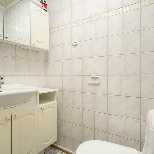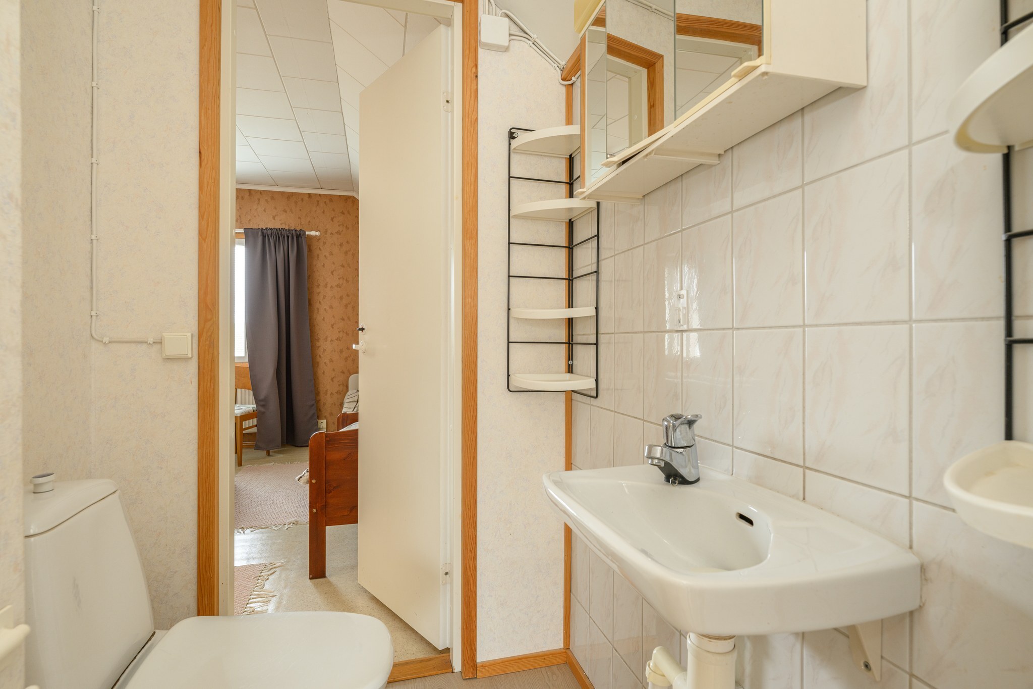 Varusteet: lattiaan asennettu WC, peilikaappi, bidee