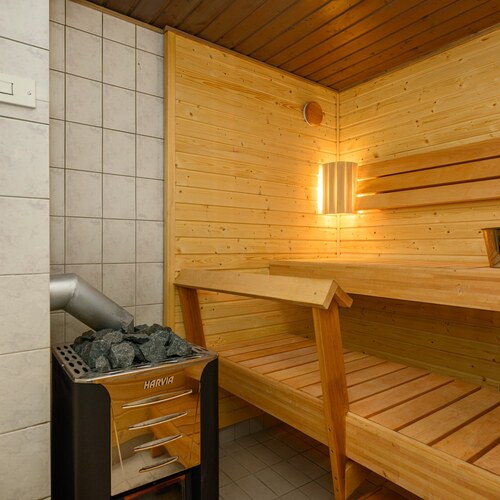 Saunan seinäpaneelit, lauteet sekä kiuas uusittu 2025.
