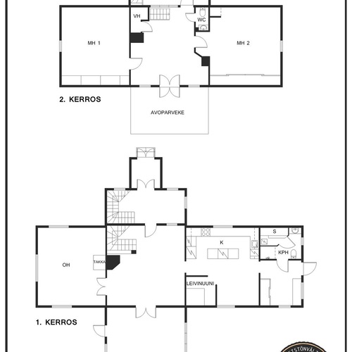 Asuinrakennuksen pinta-ala on myyjän tarkistusmittaama. Rakennusvalvonnasta ei ole saatavilla näin vanhan rakennuksen rakennuslupa-asiakirjoja.