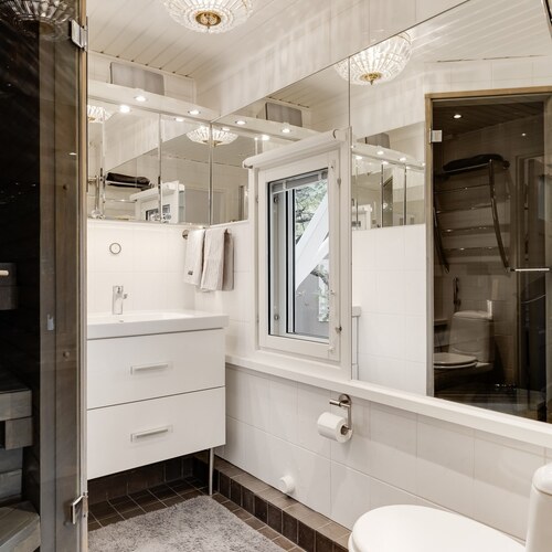– Todella tyylikkäästi ja erittäin laadukkailla, tarkkaan valituilla materiaaleilla uudistetut tilat kahdessa tasossa.