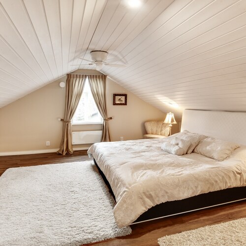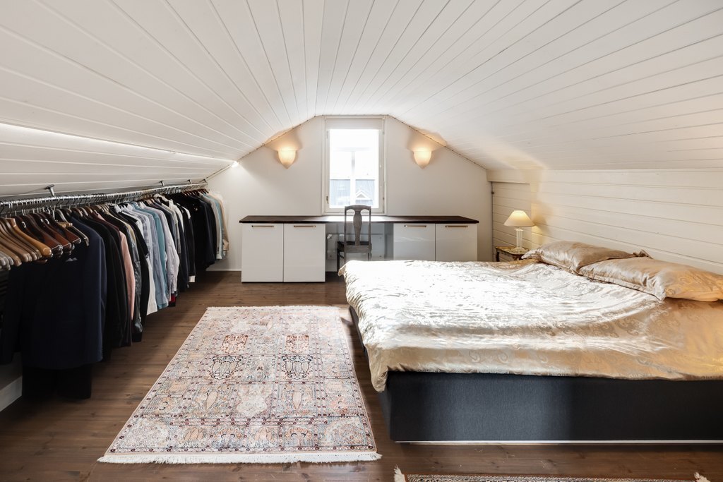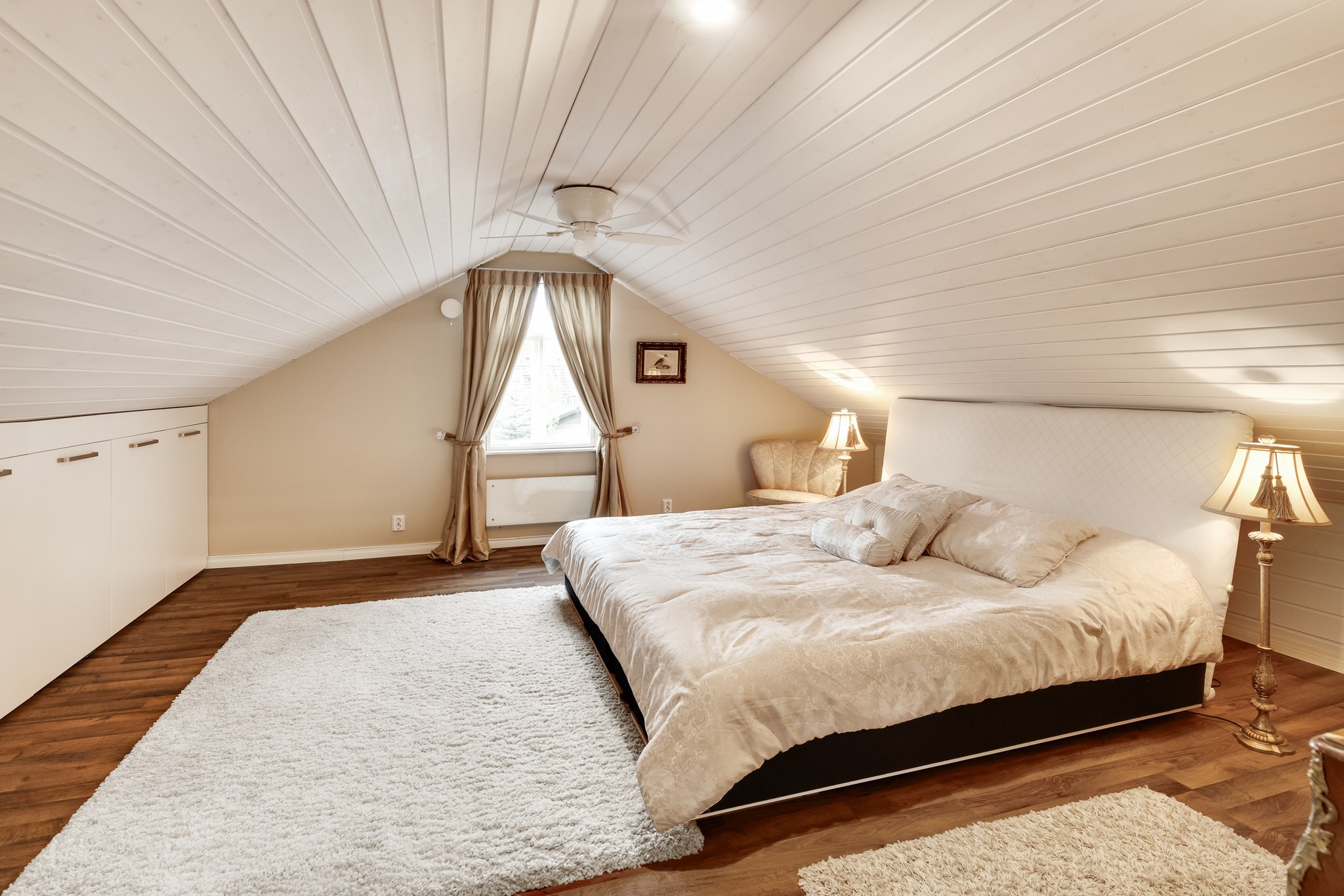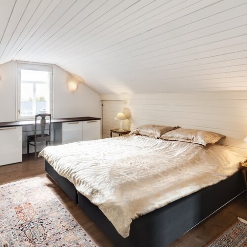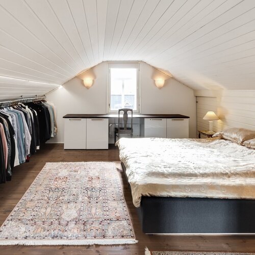 - Vinokattoinen huone, päätyikkuna lounaaseen