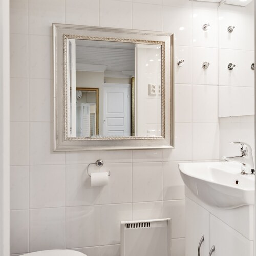 - paneeliseinät ja katto, paljon säilytystilaa, esim. liinavaatteille, pyyhkeille.