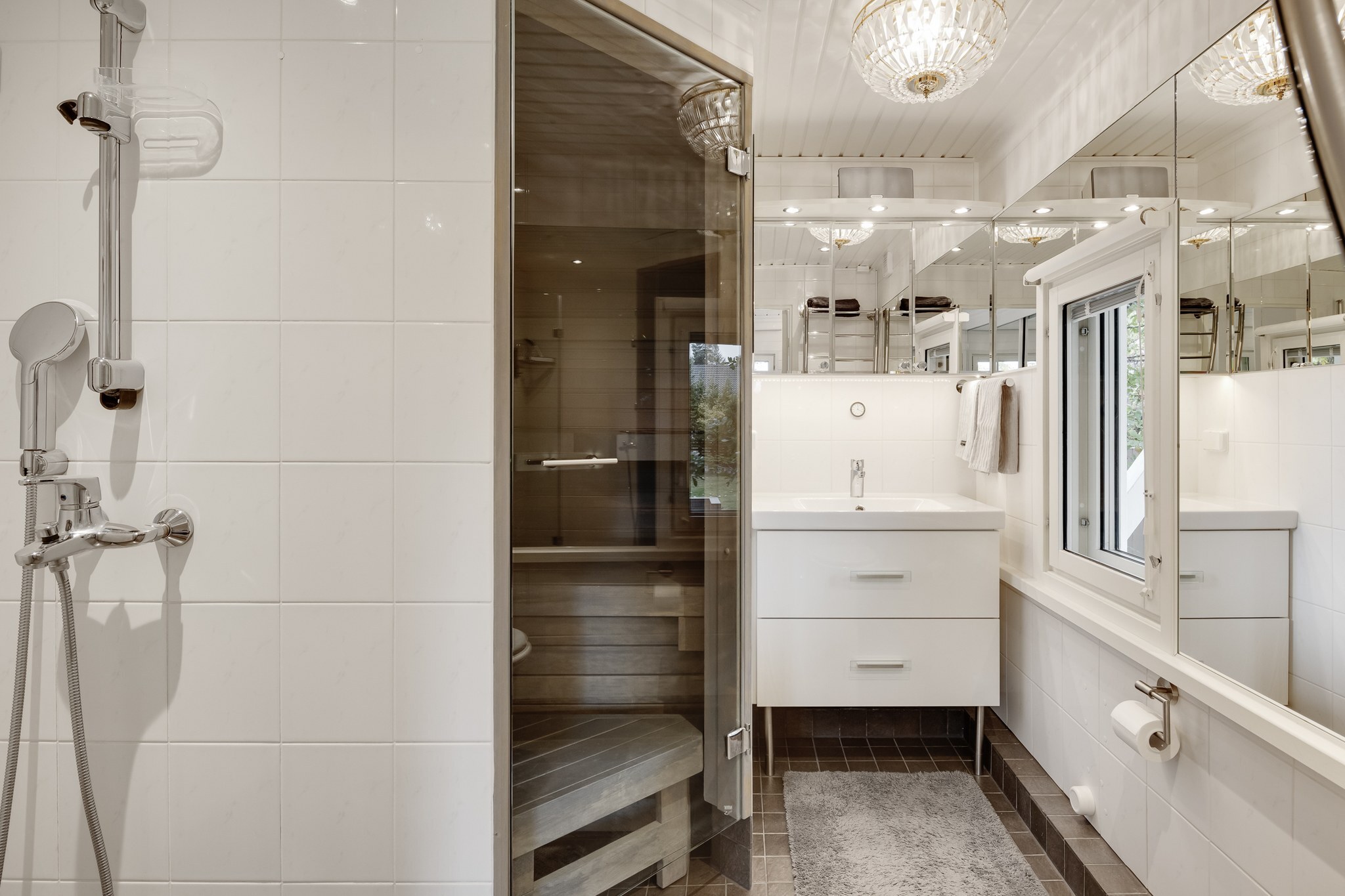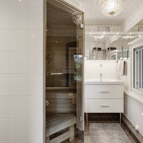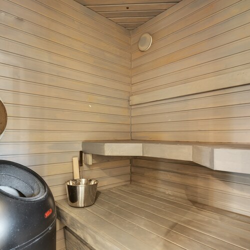 Päätalon sisäsauna; v. 2005 valmistunut sähkösauna, HetiValmis HELO-kiuas.
