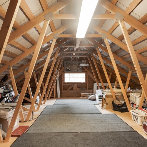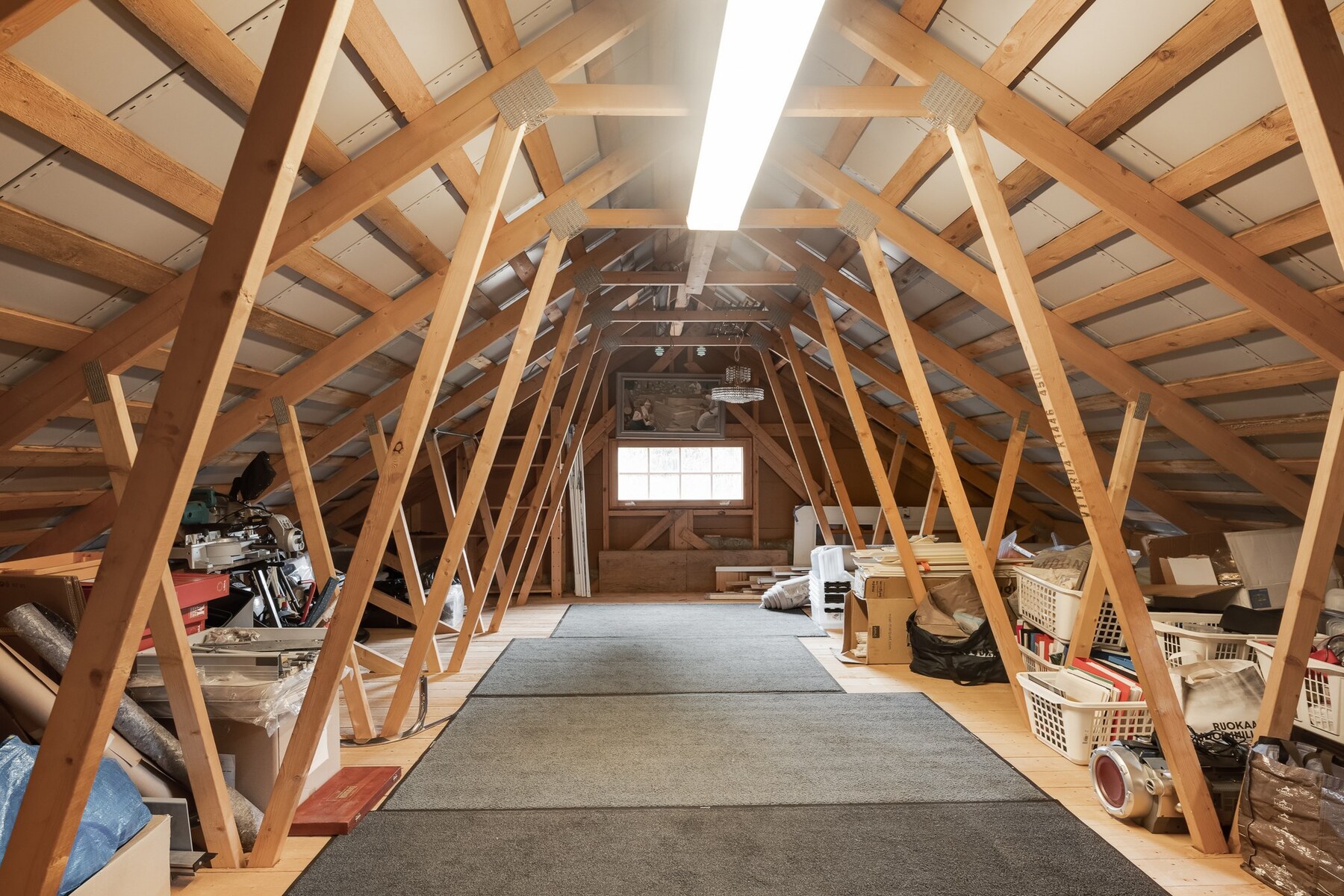 Talousrakennuksen liiterissä kahdessa kerroksessa säilytystilaa.