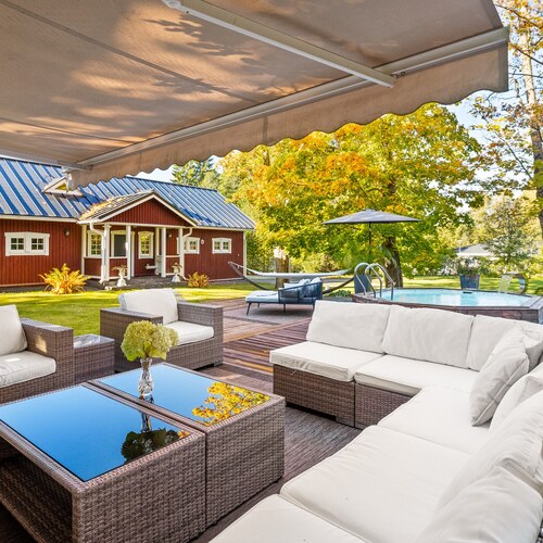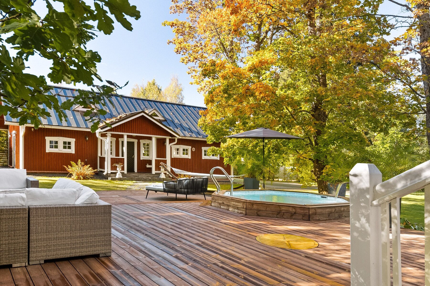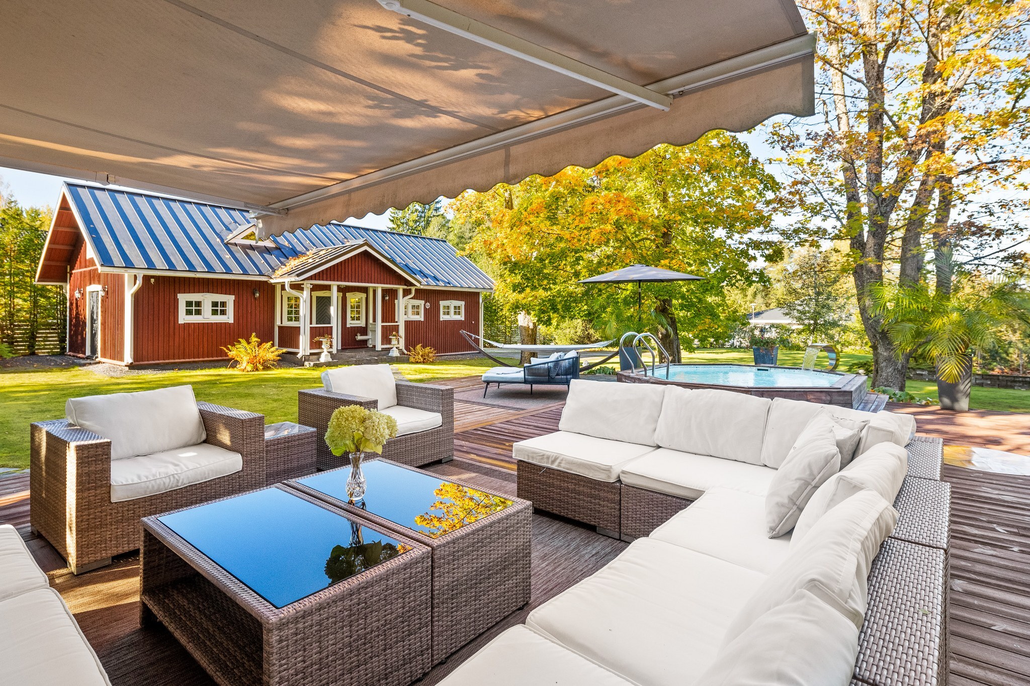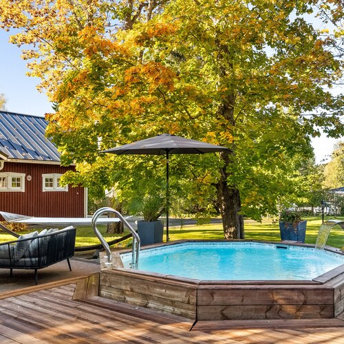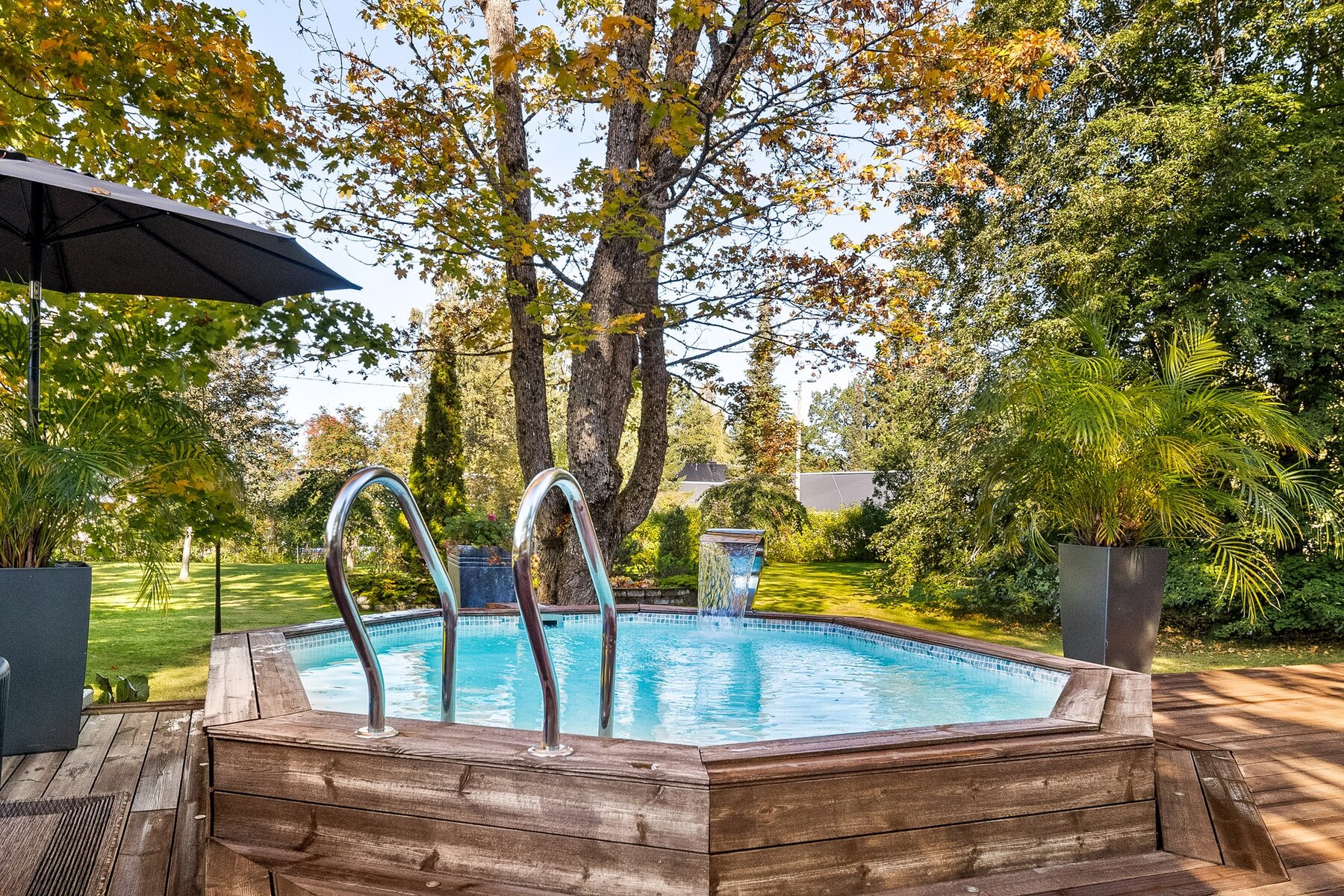 – Kaunis pihatalo 16 m², jonka edessä 300 m² terassialue upotettuine uima-altaineen on rakennettu v. 2013.
