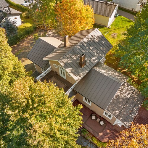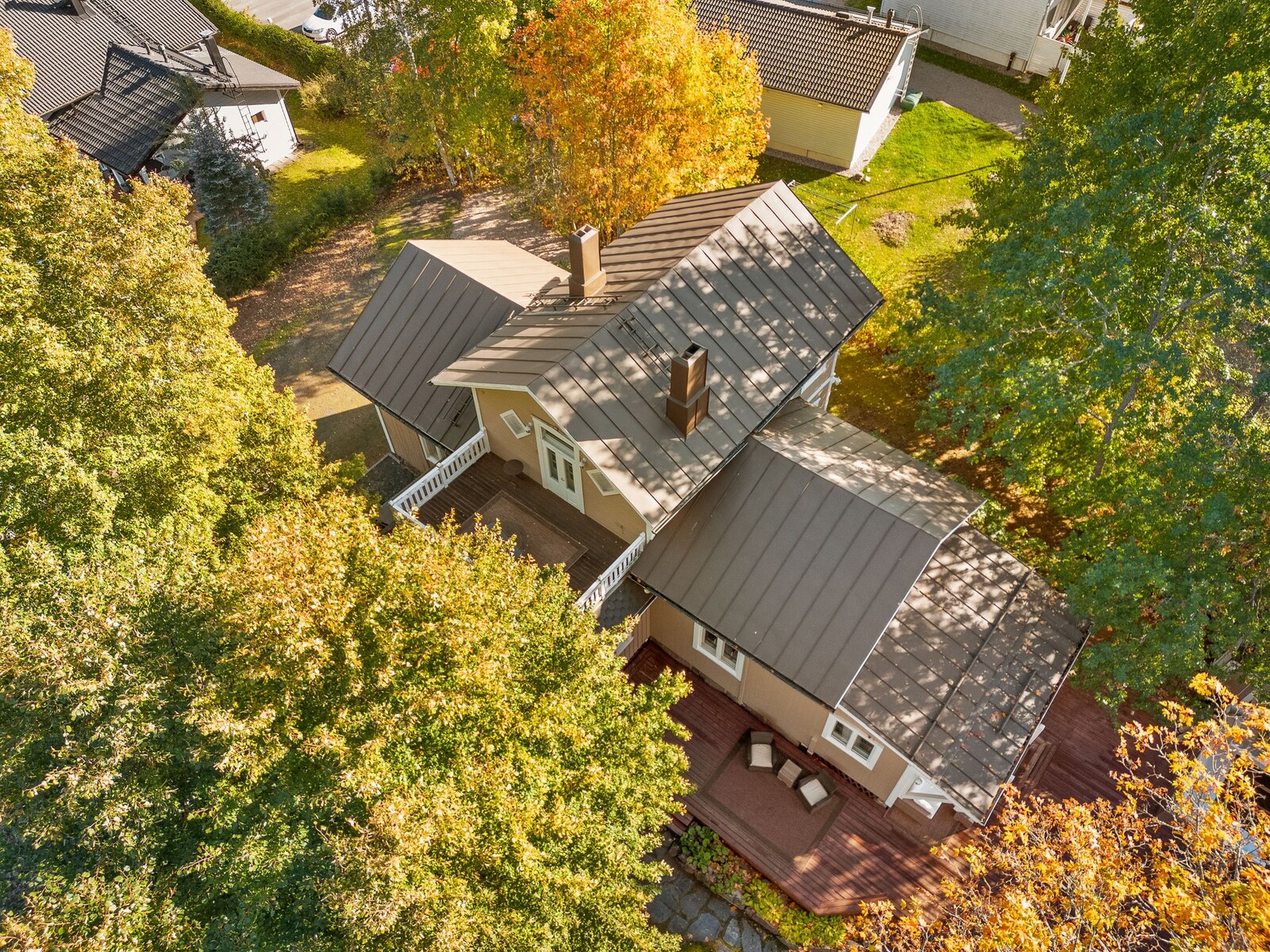 Katon kunto: Hyvä, päätalon puskusaumattu peltikatto pesty ja maalattu 2021, kaikki 4 rakennuksen katot tarkistettu 2021