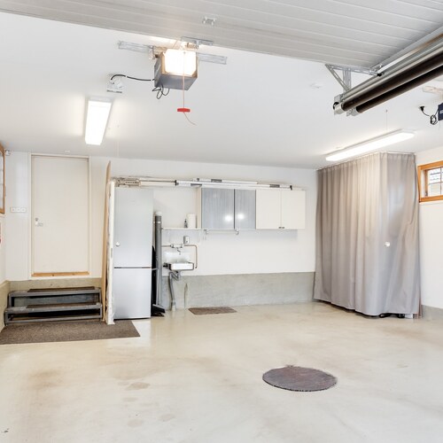 Autotallirakennus, jossa kahden auton talli, askartelutila vesipisteineen, varasto sekä yläkerrassa nukkumatila.