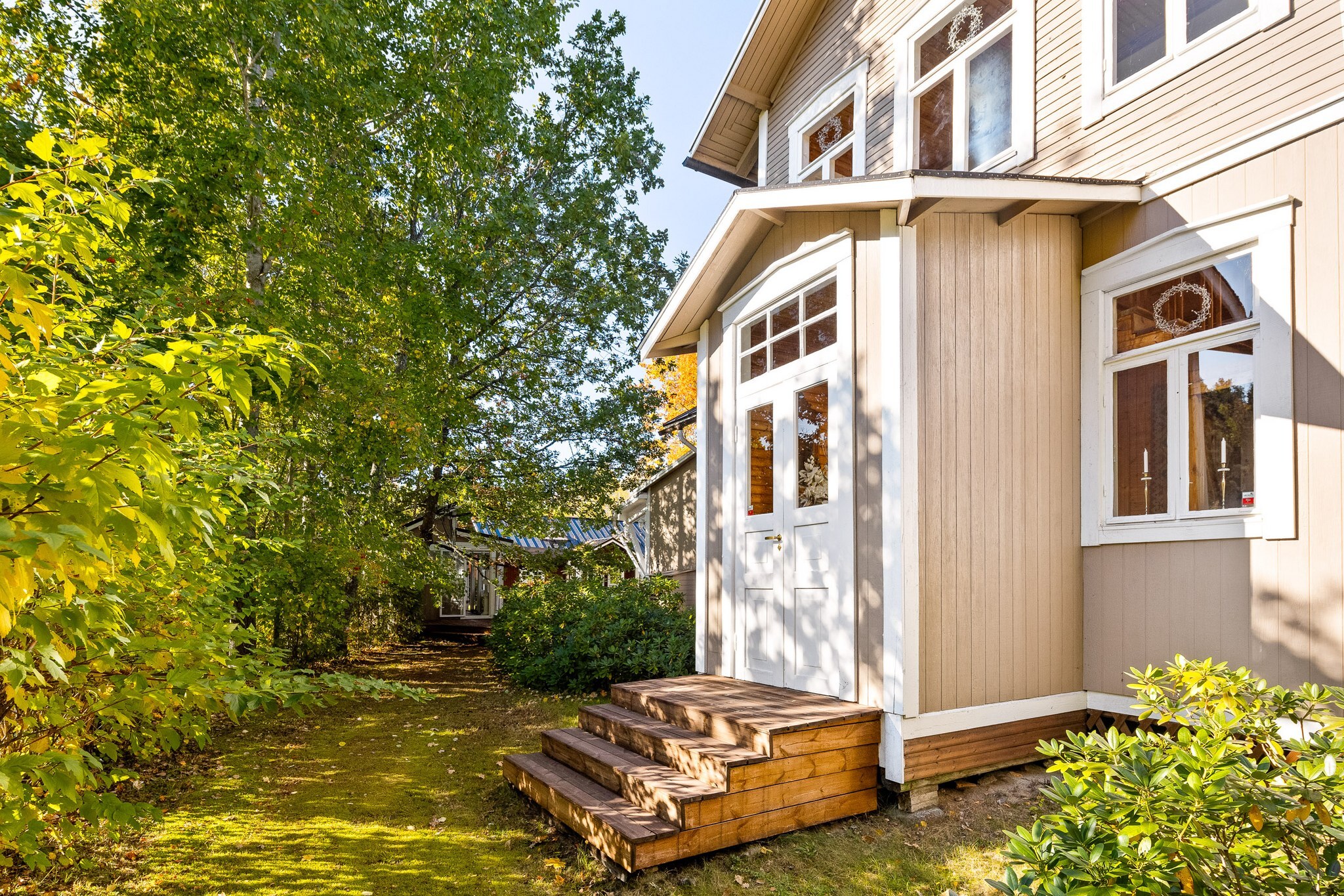 Päärakennus on puurunkoinen, alakerta on tehty hirrestä. Julkisivumateriaalina on maalattu, maitokahvin ruskea lauta. Nurkka- ja ikkunalaudoitukset ovat valkeat. Talossa on kivisokkeli ja tumma peltikatteinen auma-katto.